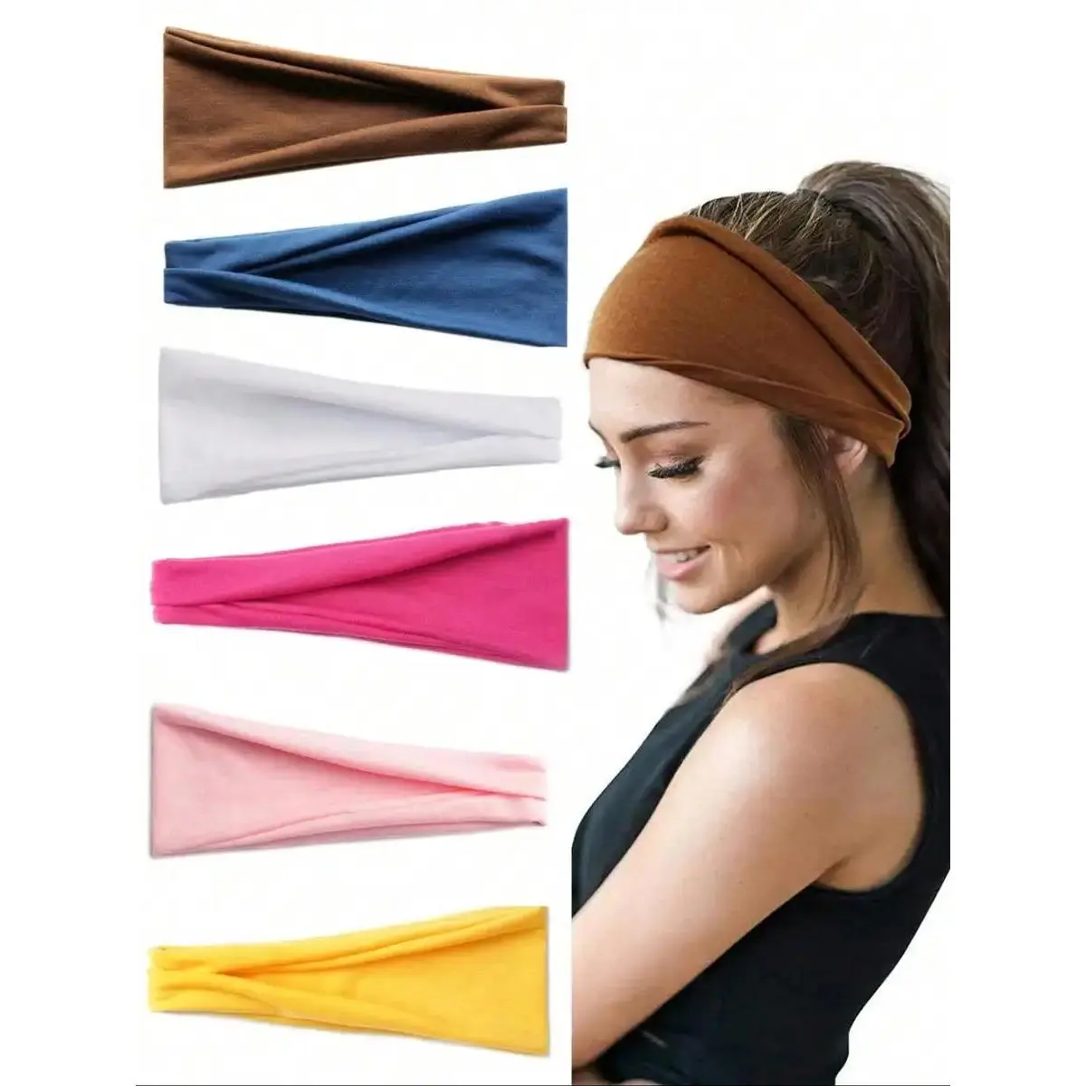 6pcs Solid Color Hair Band, Sweat Absorbing Elastic Hair Band for Men & Women, Sporty Headband for Running, Fitness, Sports Headband, Workout Headband