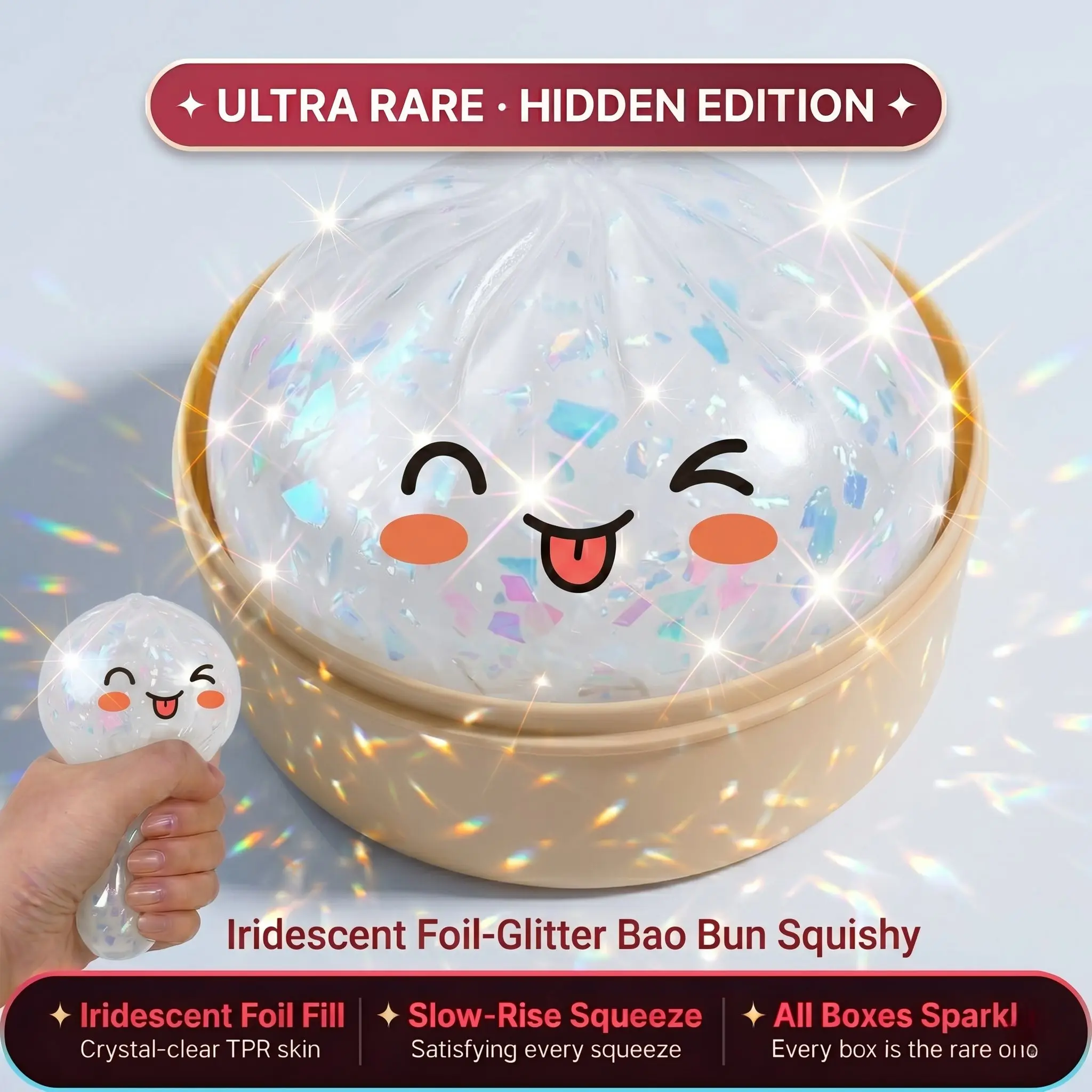 You've seen the viral dumpling squishy on TikTok. Now, meet the gold one. Rarer. Shinier. More satisfying. This Gold Glitter Hidden Edition is a collector's dream. Selling out before most people know it's back. If you know, you know.