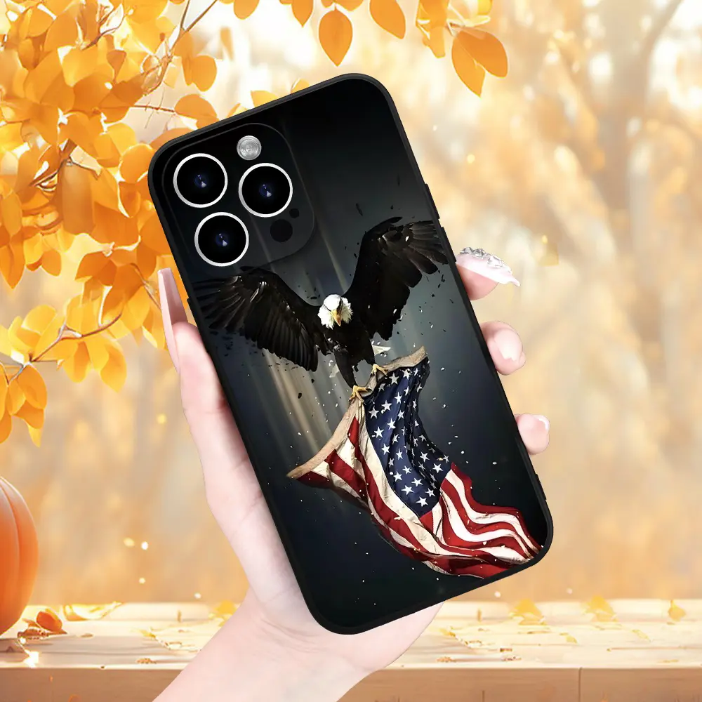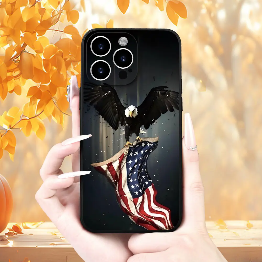 Fashion Creative Eagle Flag Pattern Mobile Phone Case High-Quality Lens Protection Black Mobile Phone Case Suitable for a variety of iPhone models, from Iphone 17 series to Iphone 11 series, and Iphone x series