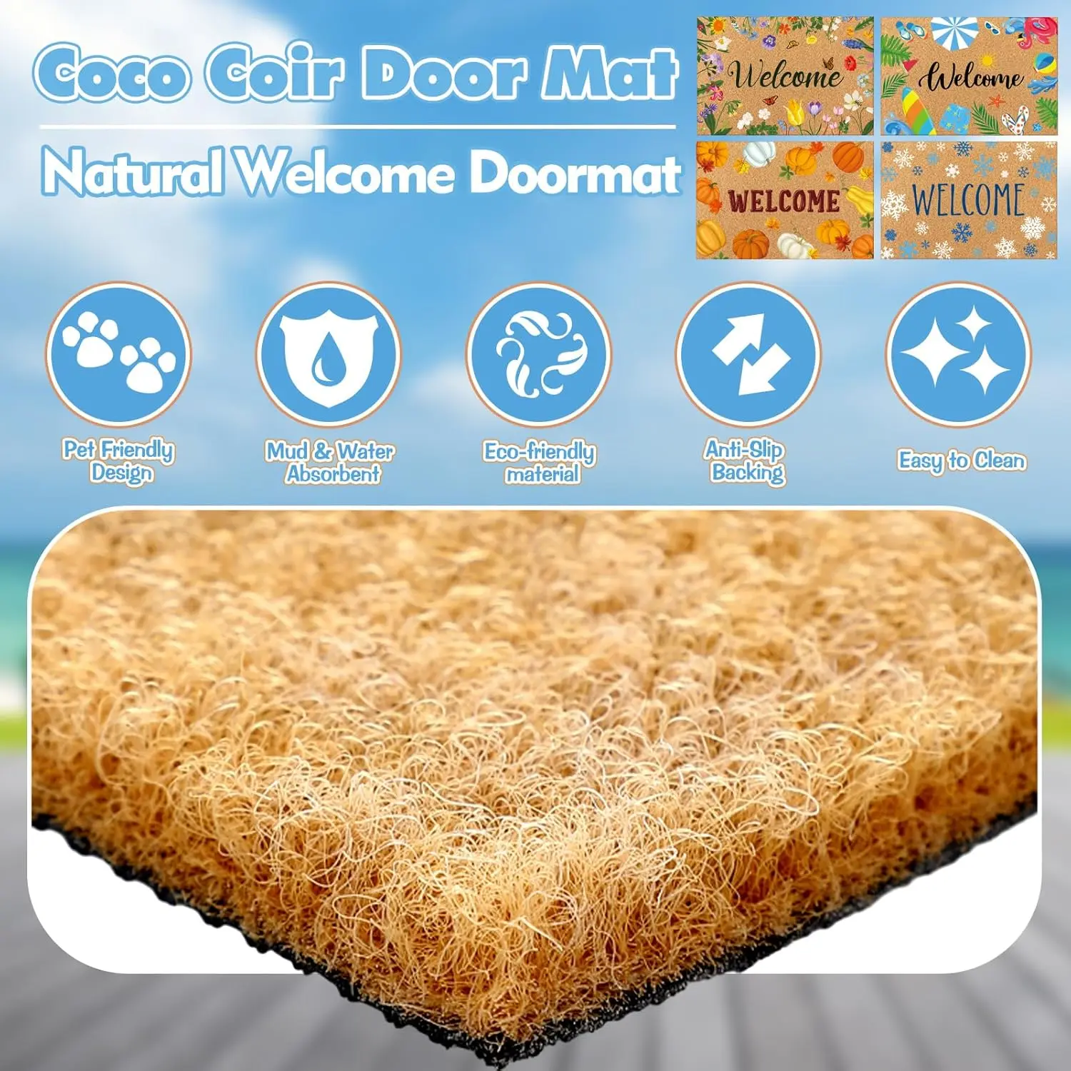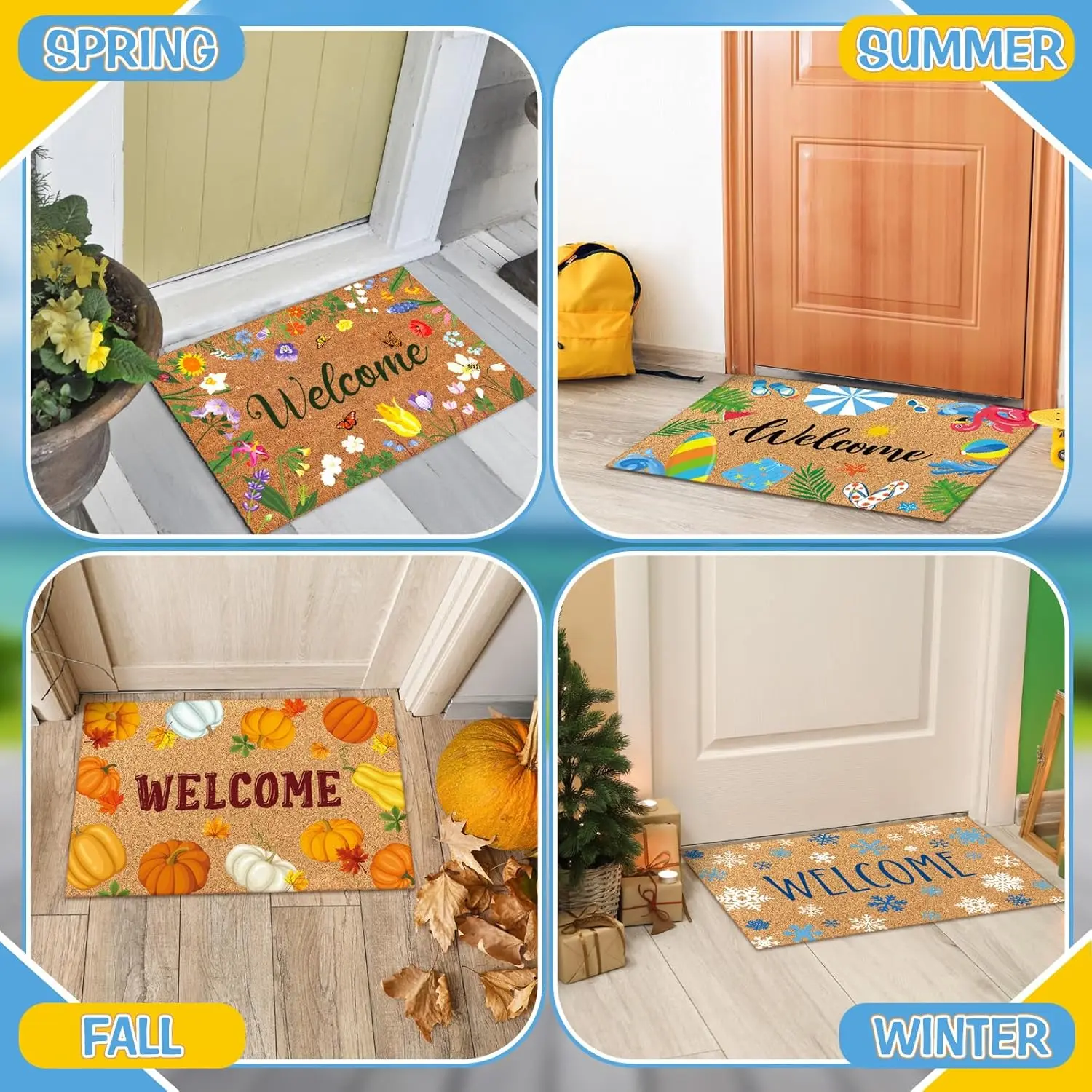Seasonal Welcome Door Mat 24"x15" Interchangeable Entrance Mats for Front Door Non-Slip Rugs Faux Coir Doormat for Summer Fall Winter Indoor