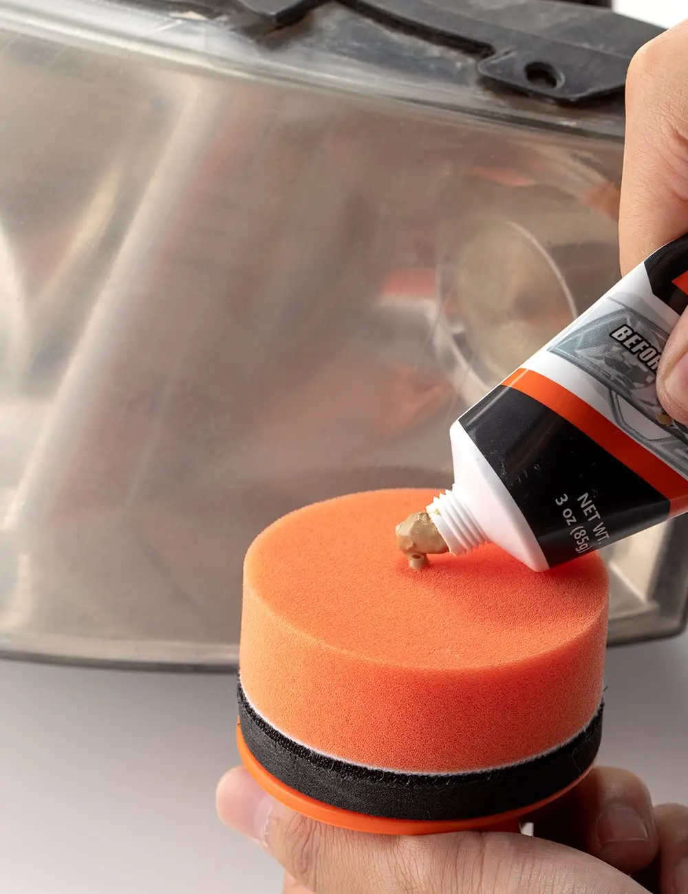 The kit includes a backer pad with an adapter that allows for machine buffing in order to restore the cloudiest lenses.