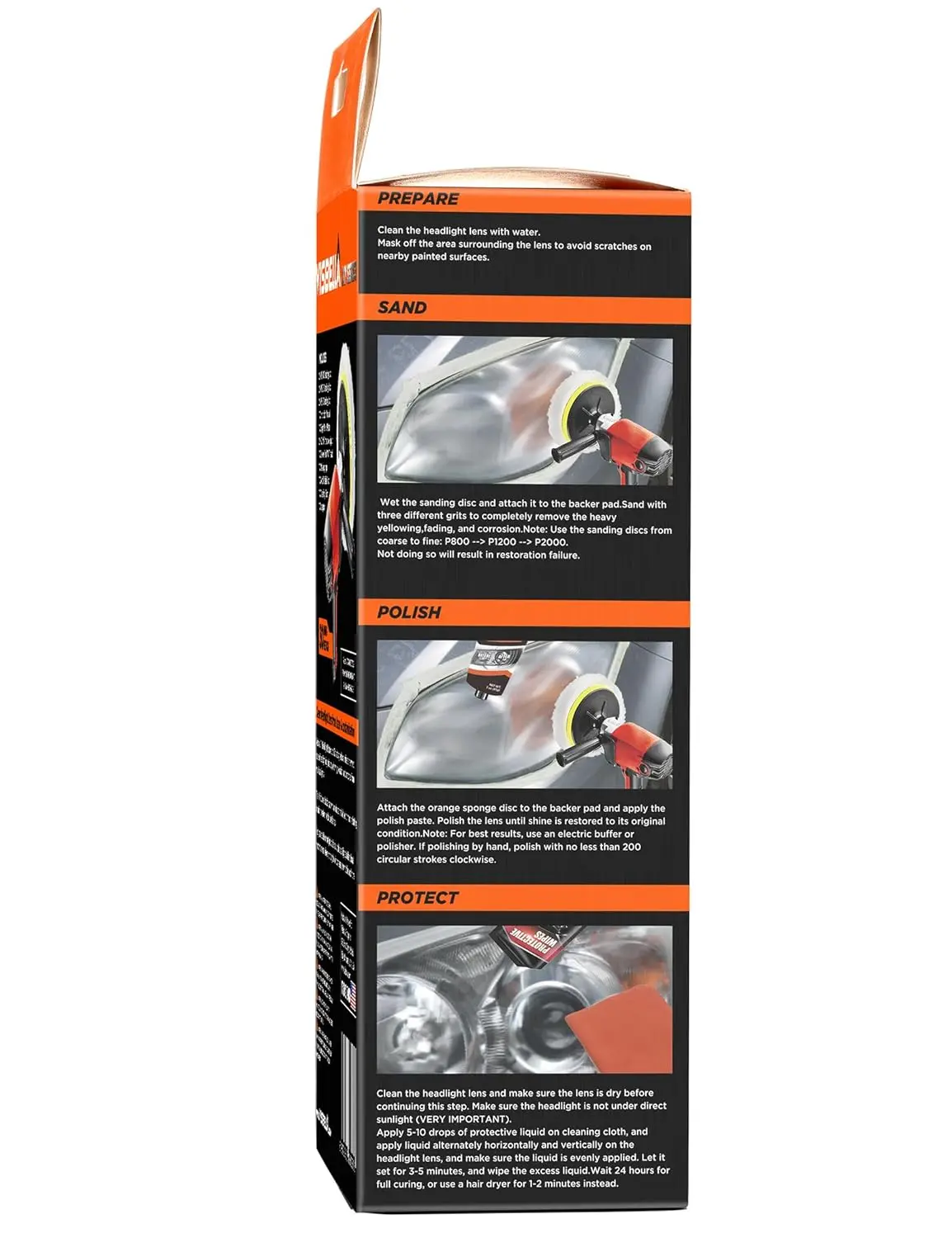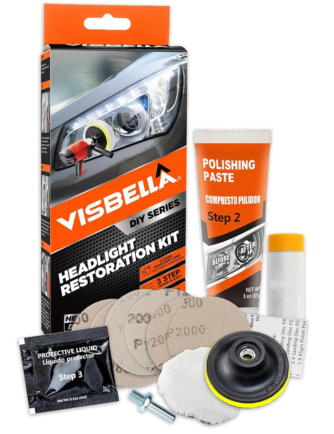 Visbella DIY Headlight Restoration Kit is designed to eliminate the worst cases of headlight degradation, yellowing, oxidation, and scratches from your headlights.