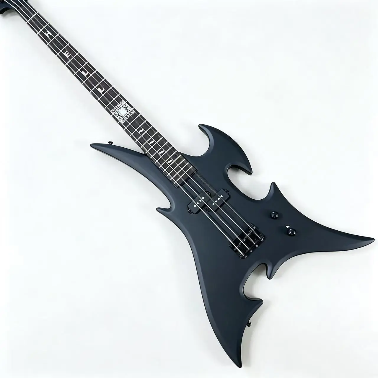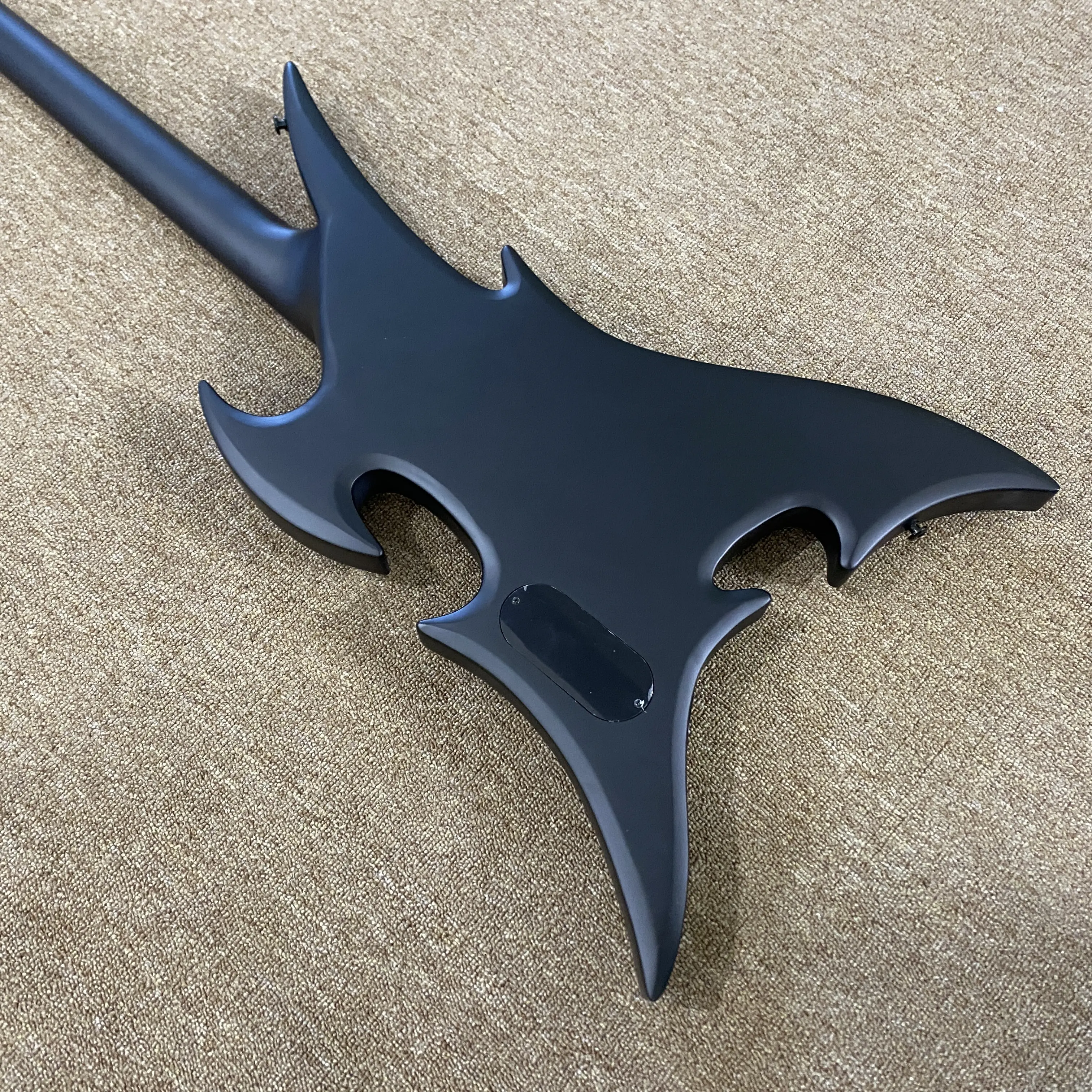Black color, special shape, bass electric guitar, 24 frets, 4 strings, equipped with pickups