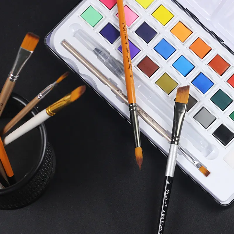 Art Fountain Pen Brush Set for Watercolor & Oil Painting - Water Soluble Lead, Solid Watercolor, Storage Brush - Art Supplies for Artists