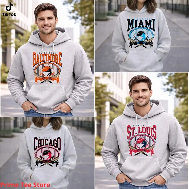 Vintage Baseball Graphic Ash Grey Hoodie, Sports Baseball Player Hoodie Game Day Shirt Ballpark Baseball Top Unisex Sports Game Shirt - PTS