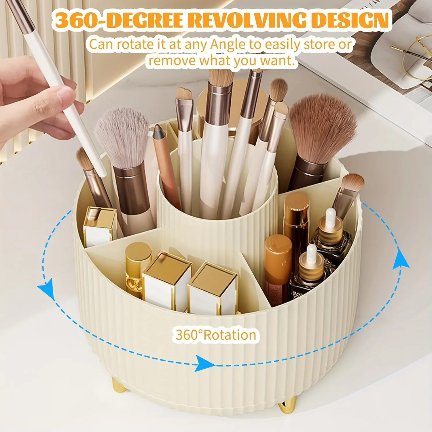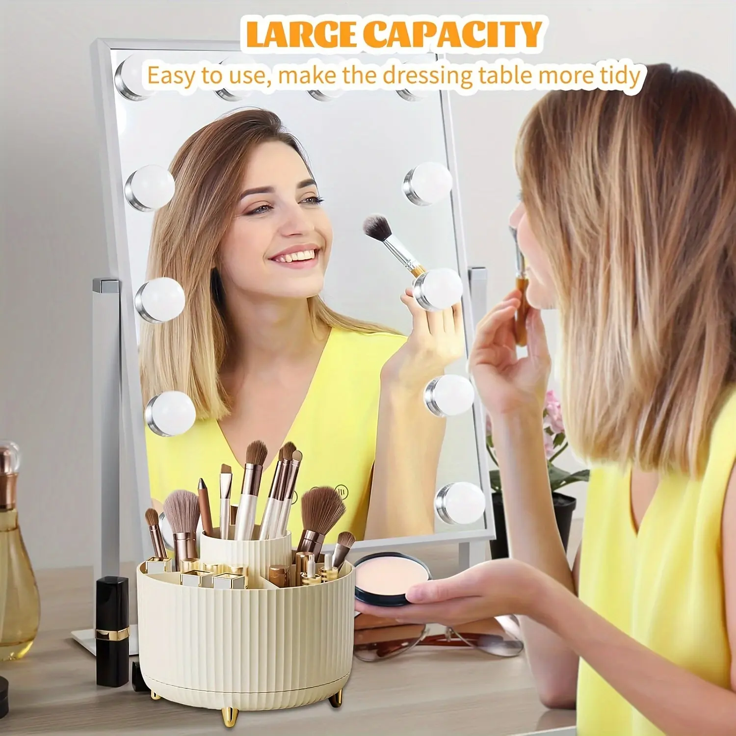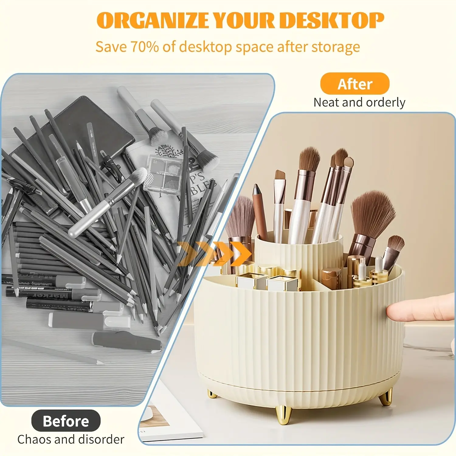 [360° ROTATION ORGANIZER]The makeup organizer for vanity can be rotated 360°, which would bring more convenience for you daily life.You can easily catch items from all directions, just need to lightly rotate the makeup brush holder