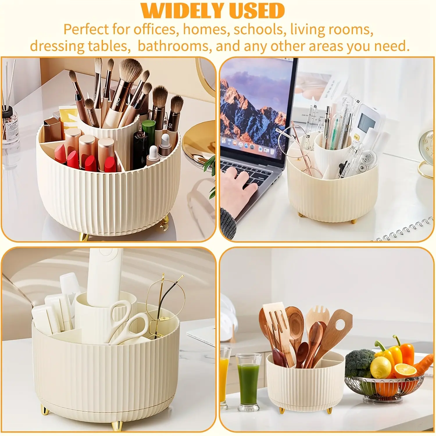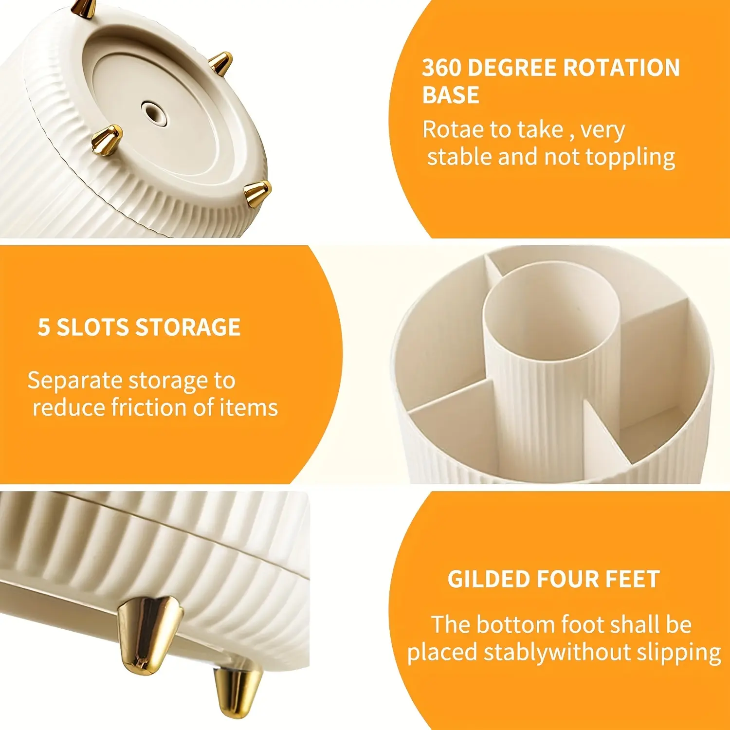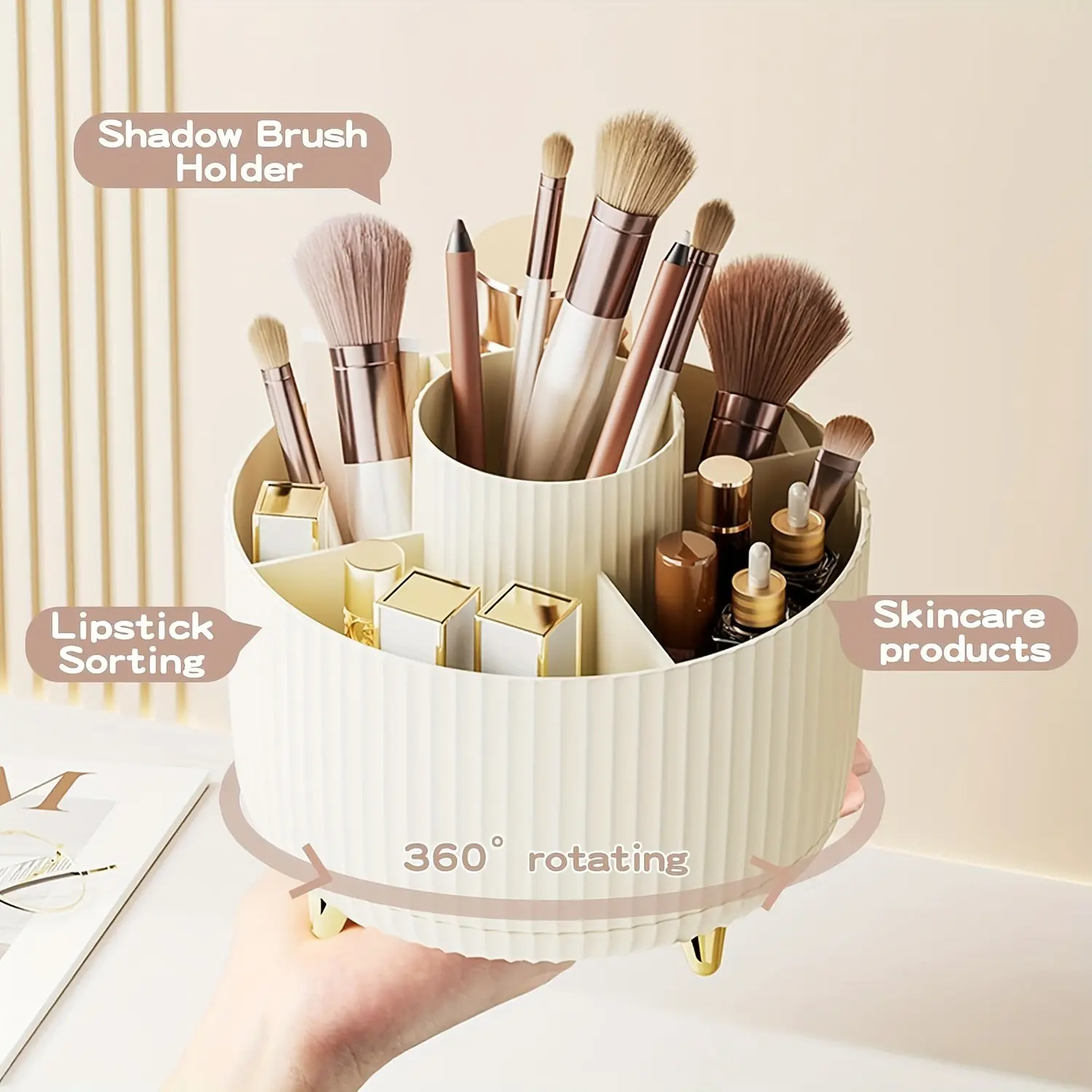 [360° ROTATION ORGANIZER]The makeup organizer for vanity can be rotated 360°, which would bring more convenience for you daily life.You can easily catch items from all directions, just need to lightly rotate the makeup brush holder