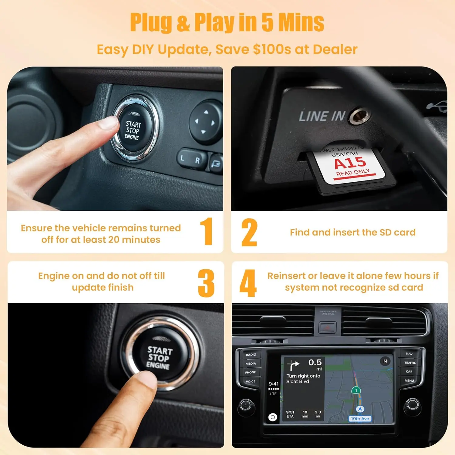 [EASY PLUG AND PLAY INSTALLATION]You need to check if the CCPU of Ford/Lincoln SYNC system is compatible or needs to be updated first, check the product image corresponding to the CCPU version.To install: 1.Turn engine OFF 20+ mins.2.Locate the SD card slot and remove the old navigation card.3.Insert the new Navigation SD Card untll it clicks.4.Start the engine to ensure, the "Navigation" icon should appear in the top-right corner (Auto-updates in 10-20 mins Never interrupt the process!).