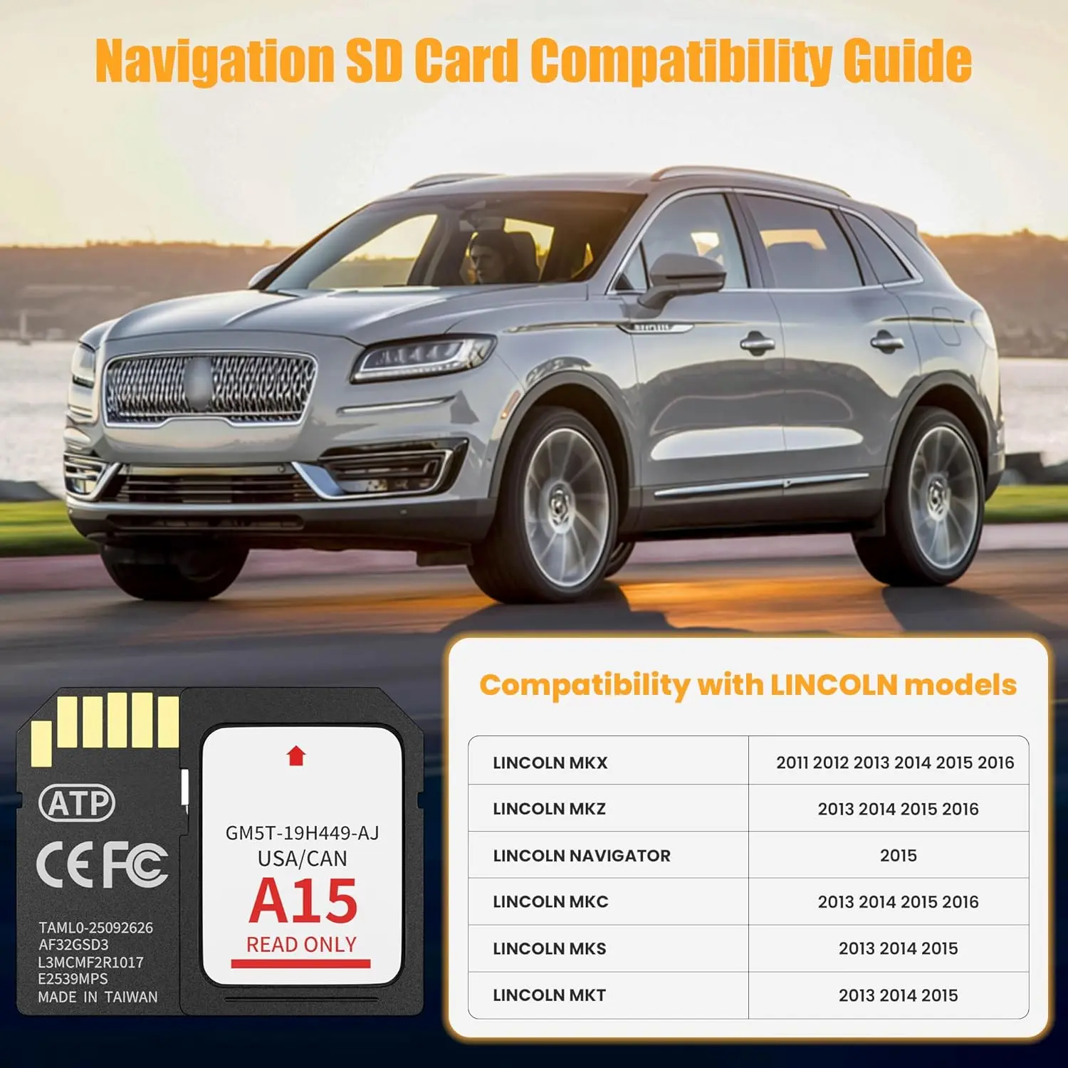 [WIDE COMPATIBILITY WITH LINCOLN MODELS] This navigation SD card compatible with Lincoln Accessories Fits Lincoln MKZ (2013 - 2016), MKX (2011 - 2016), MKC (2015), MKS (2013 - 2015), MKT (2013 - 2015), NAVIGATOR (2015).Reliable Lincoln navigation accessories that update your vehicle’s SYNC 2 system for accurate routing across USA & Canada.