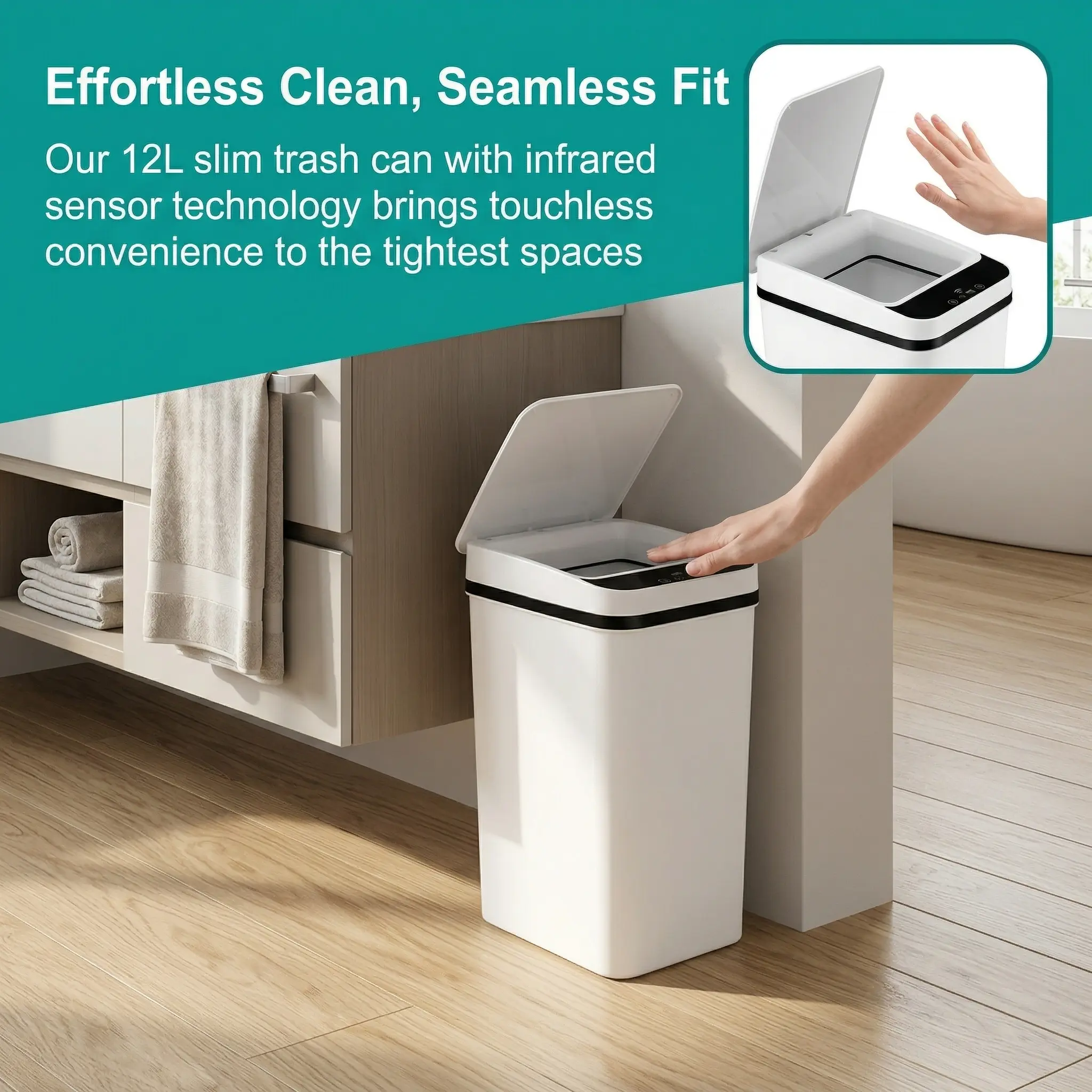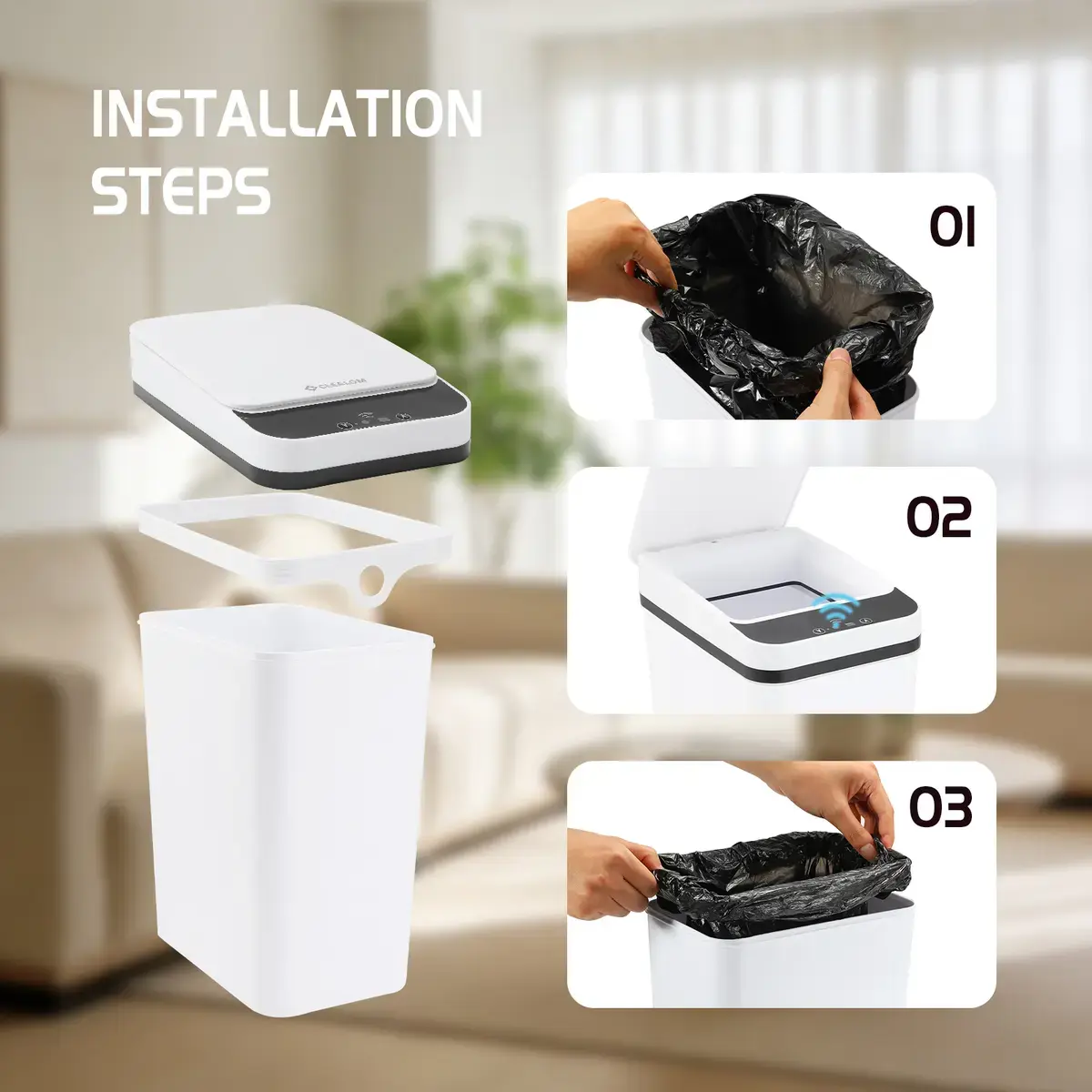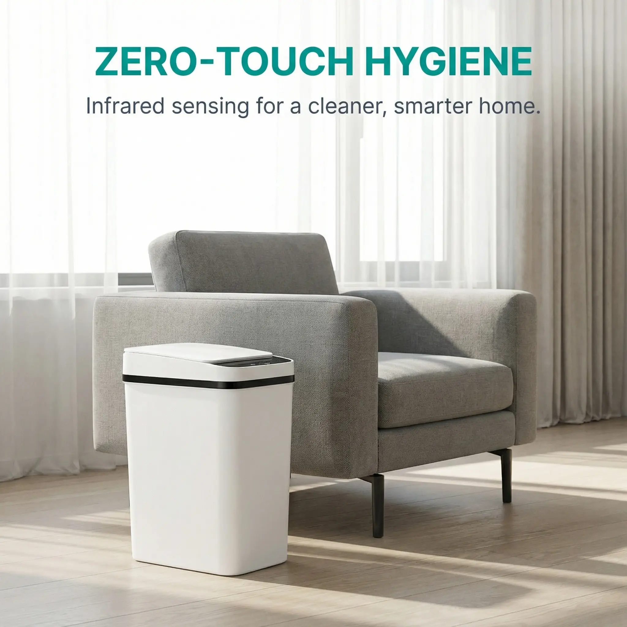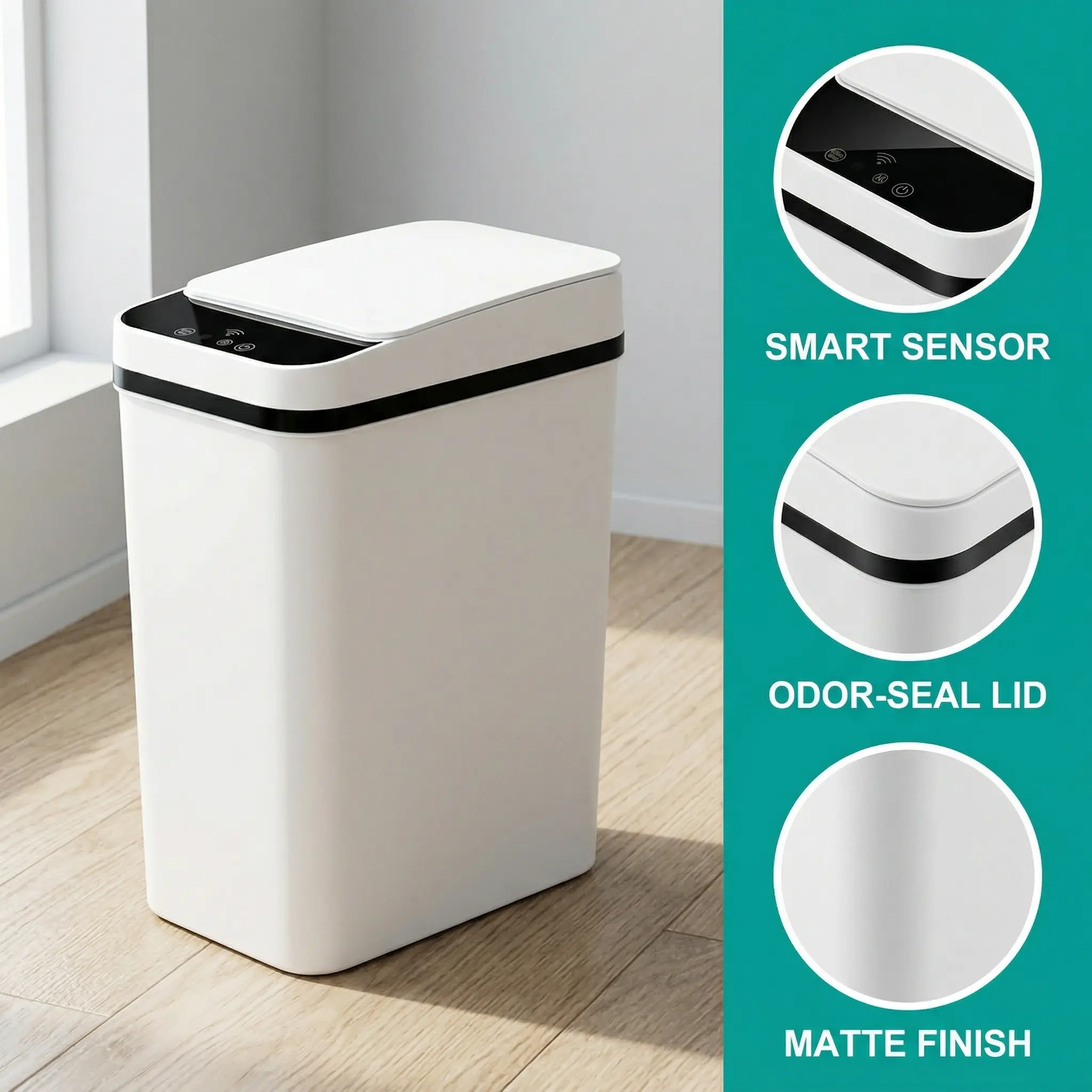 ·Compact Design: This small motion sensor smart trash can is perfect for small spaces. It holds 2.2 gallons and fits seamlessly into bedrooms, bathrooms, offices, or living rooms. The slim design ensures it doesn't take up much room.trash bin reduces contact with germs. Simply move your hand over the smart trash can.