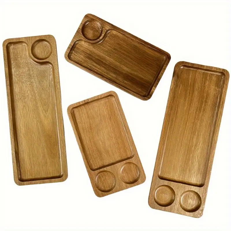 1pc Handmade Wooden Fruit Tray, Natural Wood Plate for Contact, Rectangular Dessert or Breakfast Sushi Plate, Creative Tableware for Kitchen, Decorative Holiday Kitchen Gadget, All-Season Kitchen Supplies