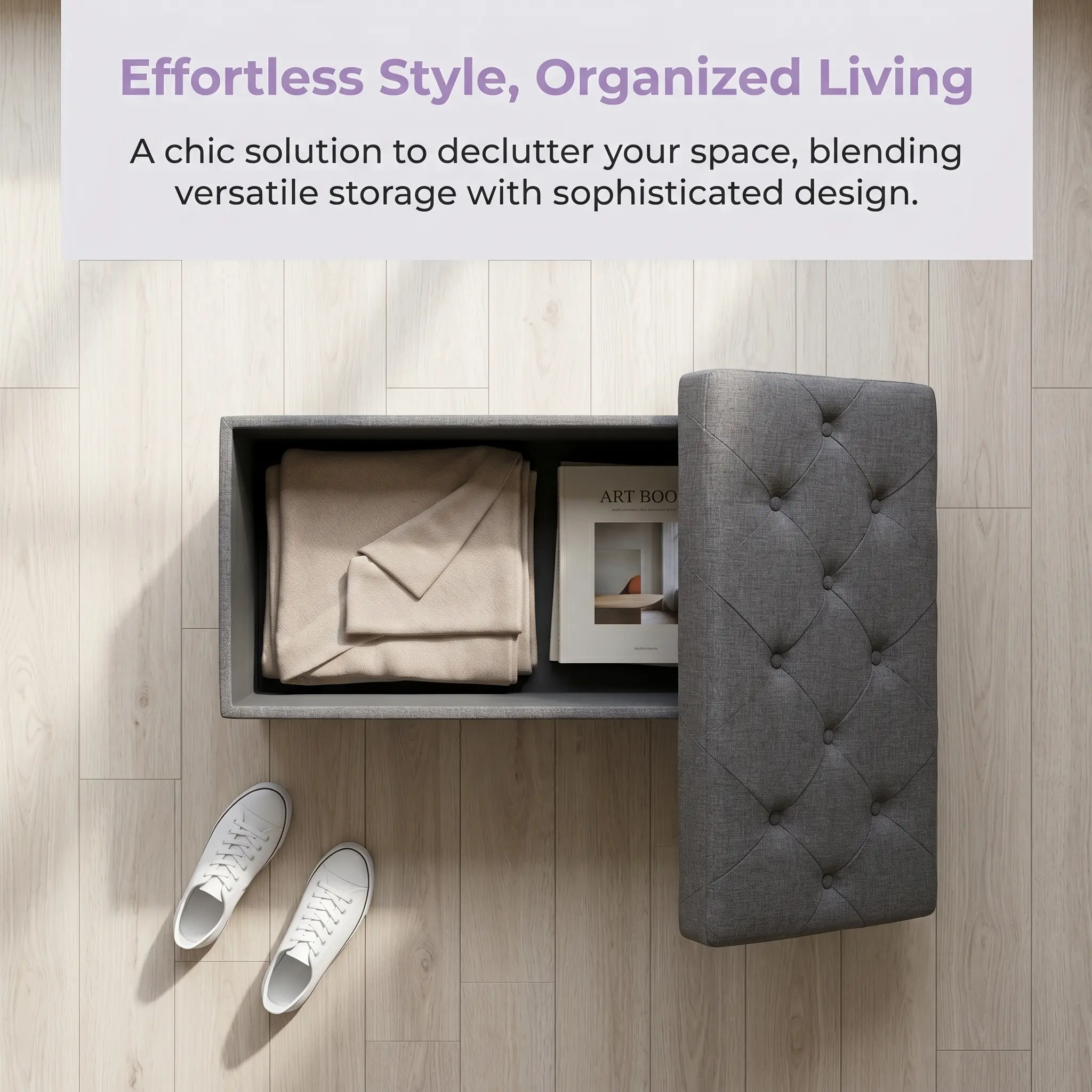 Versatile Tufted Storage Ottoman Bench Upholstered End of Bed Chest Foot Rest with Sturdy Legs Ample Storage Capacity for Living Room Bedroom Hallway