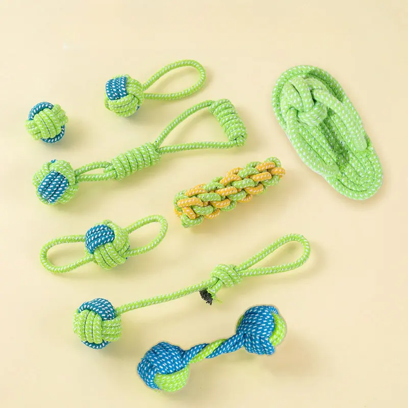 ·7-piece set with multiple shapes (balls, tug ropes, knots) for endless fun