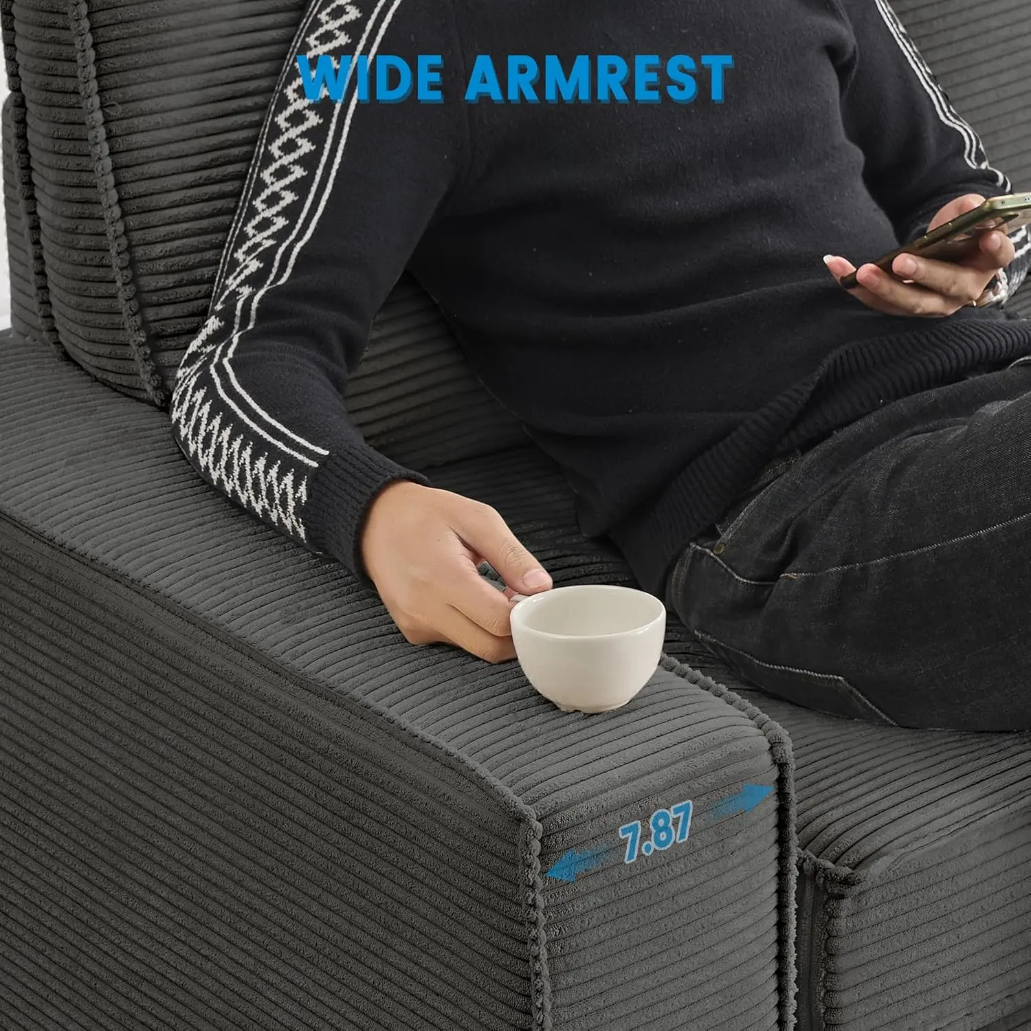 ·Superior Comfort & Support: Upholstered in soft gray corduroy, high-density foam, and wide armrests for long-lasting relaxation.