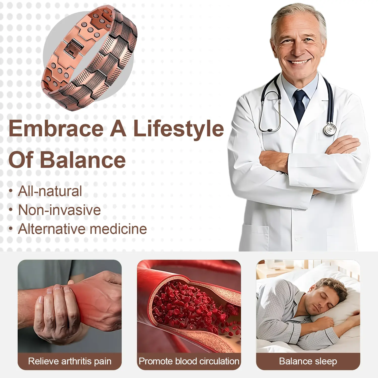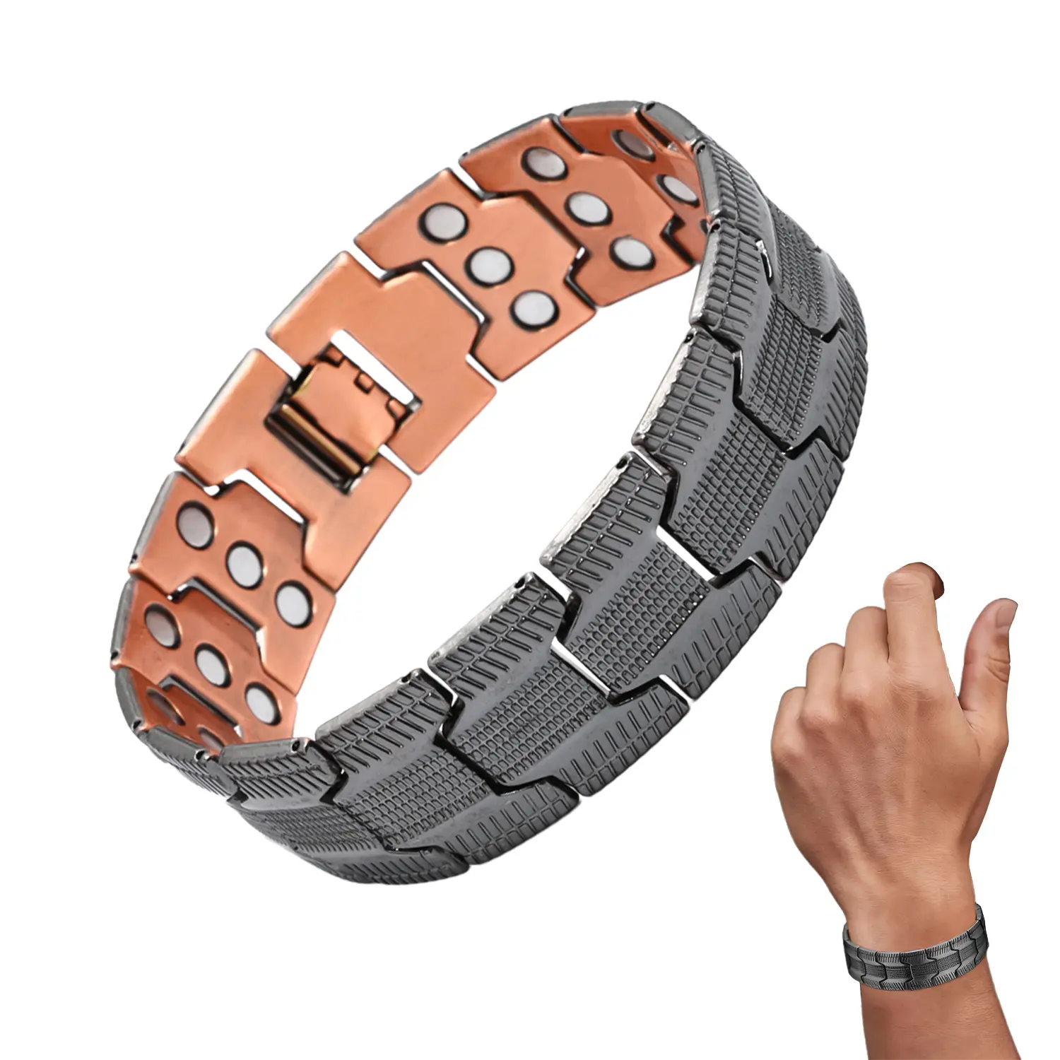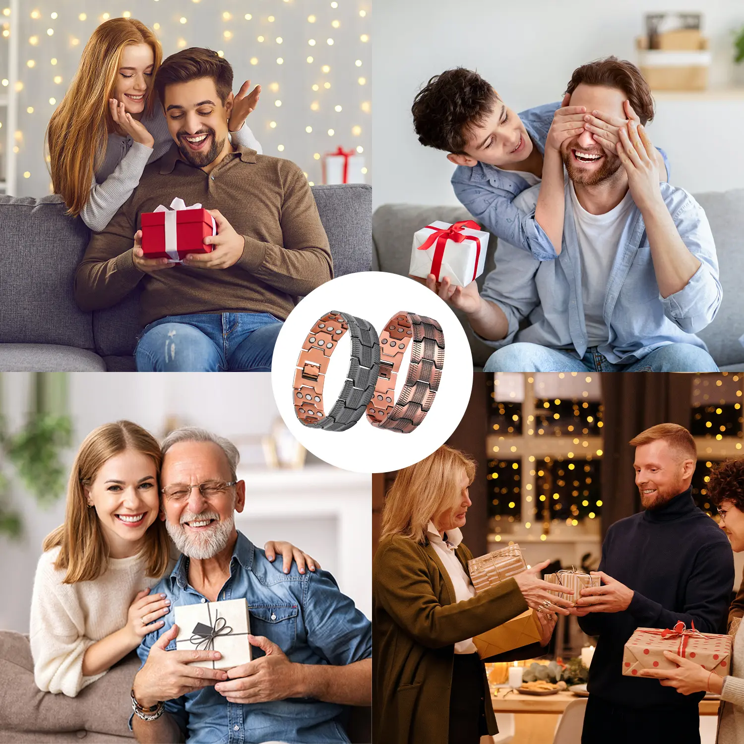 3x Men's Copper Bracelet Triple Super Magnet, Magnetic Bracelet with Adjustable Size Tool, Relieves Joint Pain and Improves Energy Circulation Strong Magnetic Bracelet Men's Valentine's Day Father's Day Jewelry Gift