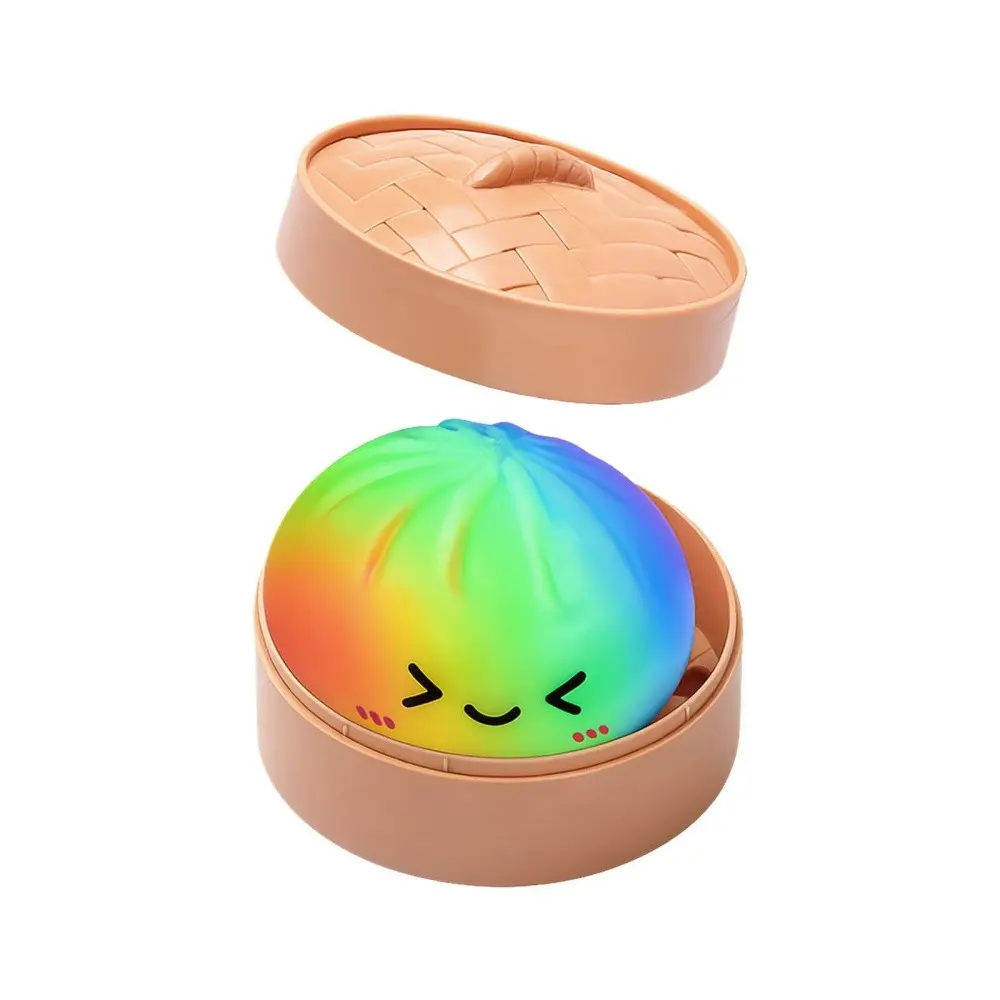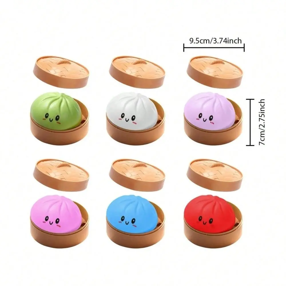 Using thickened TPR soft rubber material, it has a soft and chewy texture that is not easily deformed when pulled, safe and odorless. After pressing, it slowly returns to its original shape, with a long-lasting decompression feel. The rebound process brings healing feedback. It is matched with a simulated steamer base, which not only achieves storage function but also enhances the atmosphere of the product scene, increasing the fun of playing with it