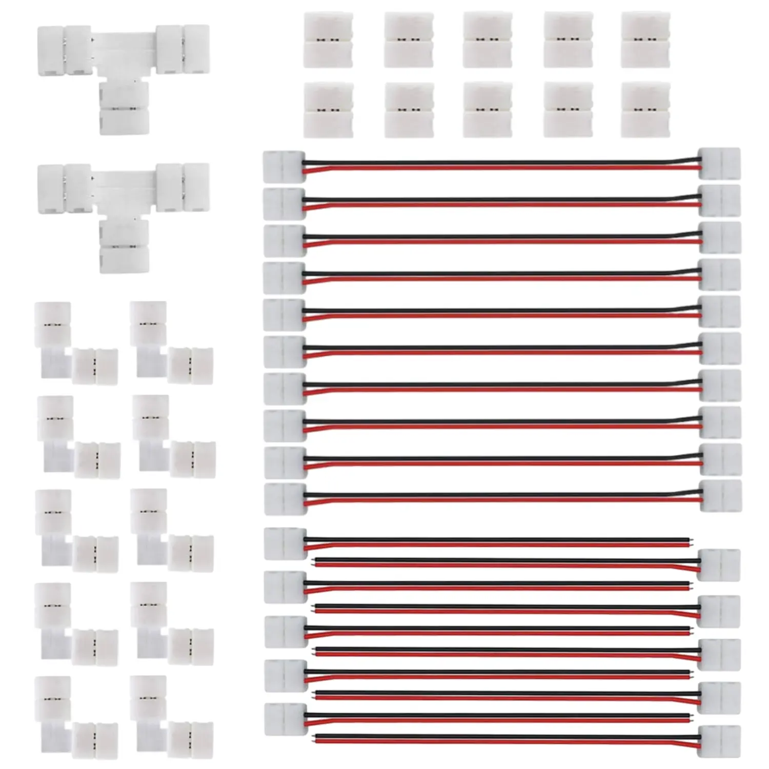 2 Pin LED Strip Light Connector Kit, 8mm Solderless Adapter Connectors, T Shape and Gapless Connector, LED Strip Accessories Set for 8mm Wide 3528 2835 Single Color Flexible LED Strips