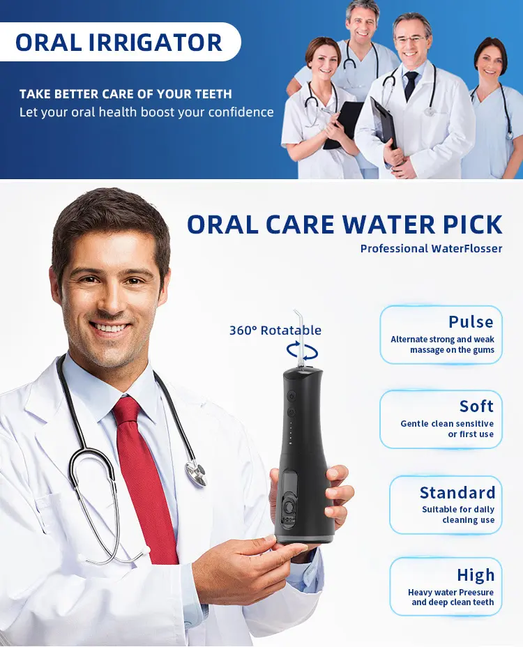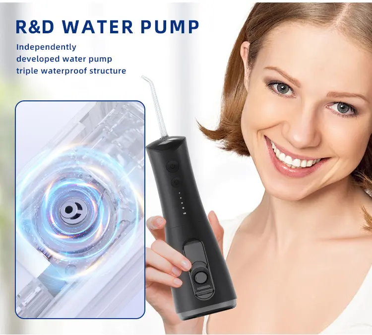 Advanced water pulse technology with adjustable pressure: This cordless water flosser utilizes advanced water pulse technology and features 4 adjustable pressure settings. It helps remove food debris and reduce plaque buildup in hard-to-reach areas, providing a gentle yet effective cleaning experience for daily oral care—particularly suitable for those with sensitive gums.