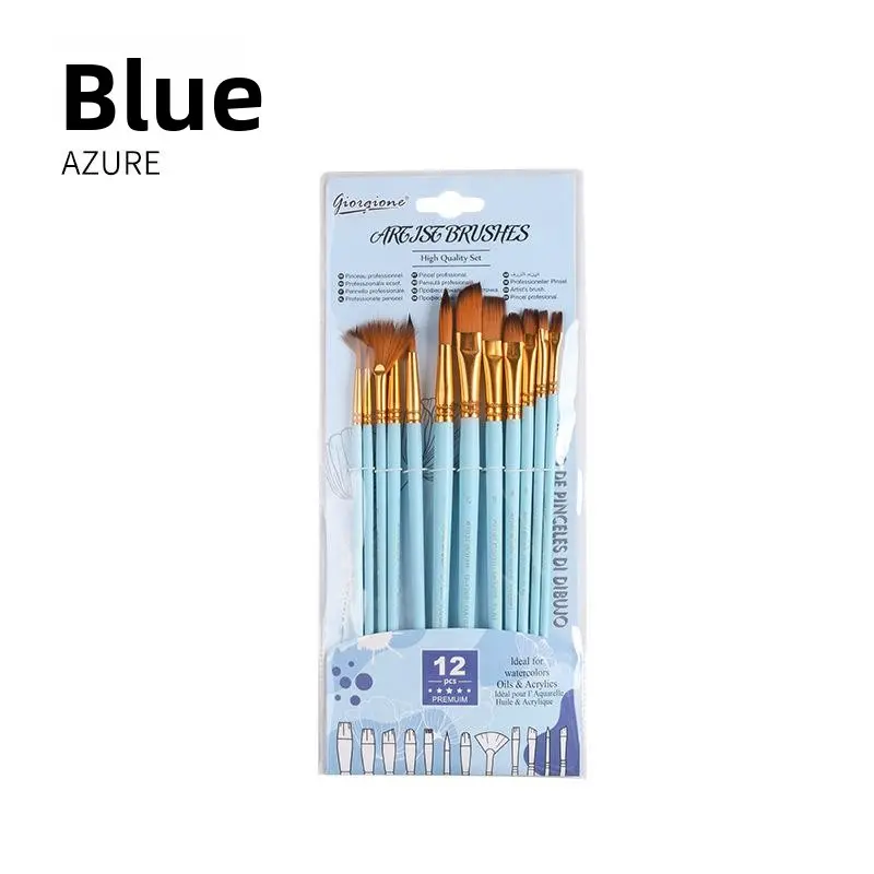 Art Pearlescent Blue Watercolor Brush Pens Set - 12 Nylon Gouache Oil Paint Brushes for Artists, Trendy Art Supplies