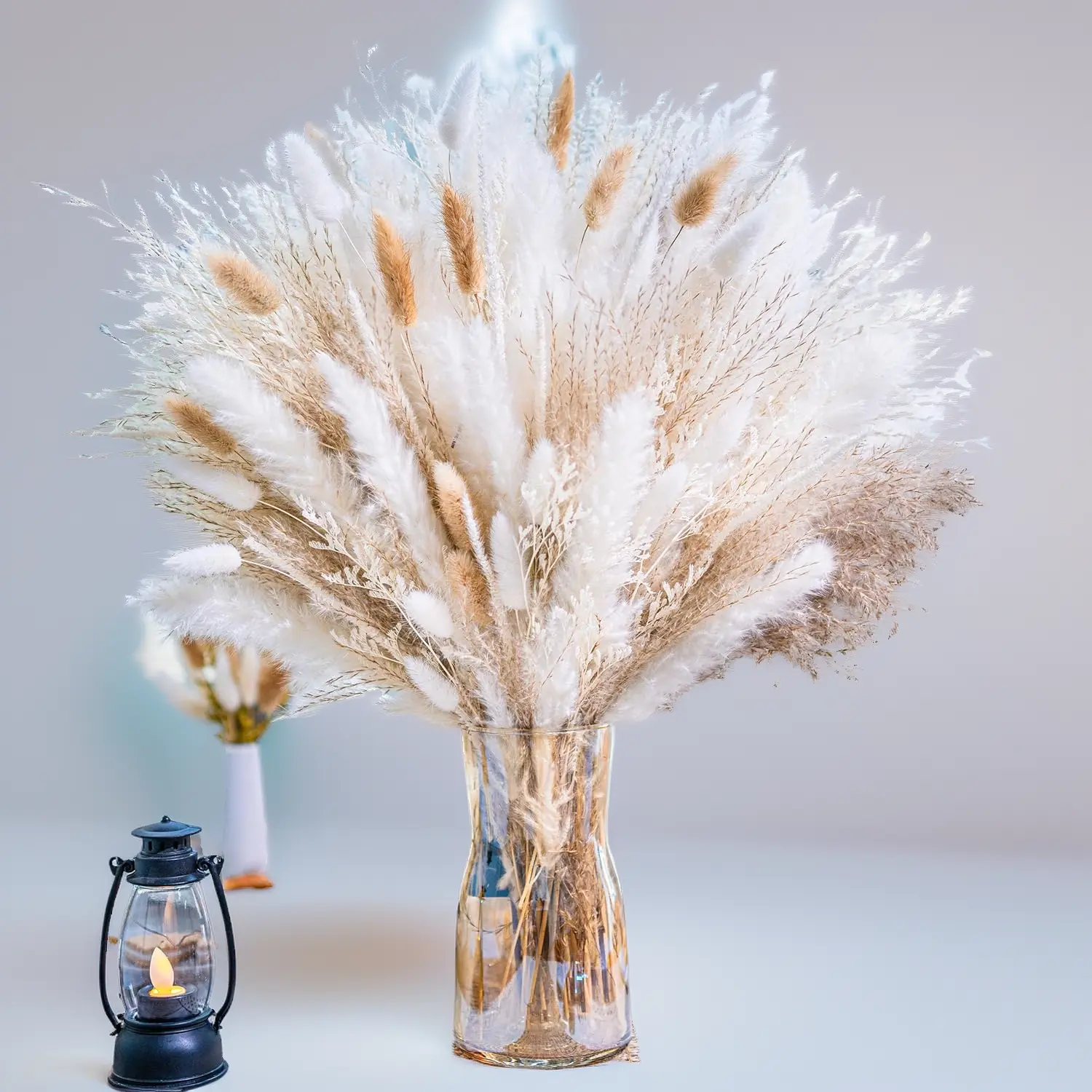 95 PCS Natural Dried Pampas Grass Bouquet - Neutral White & Beige Boho Floral Decor. Perfect for Wedding Centerpieces, Table Arrangements, Rustic Home & Vase Filler