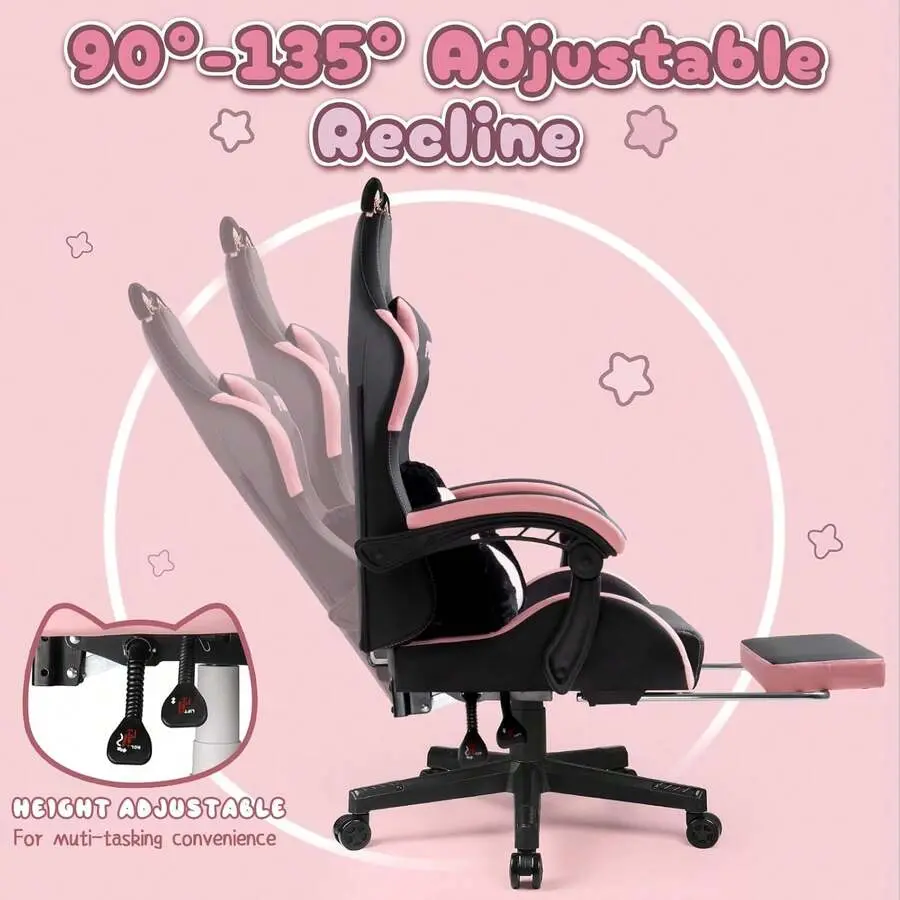 Sturdy Structure: This kawaii gaming chair is made of all-steel frame, with SGS certified Class 3 gas lift and heavy duty base, the weight capacity of the chair can reach 275lbs, which ensures safety and durability at the same time of comfort