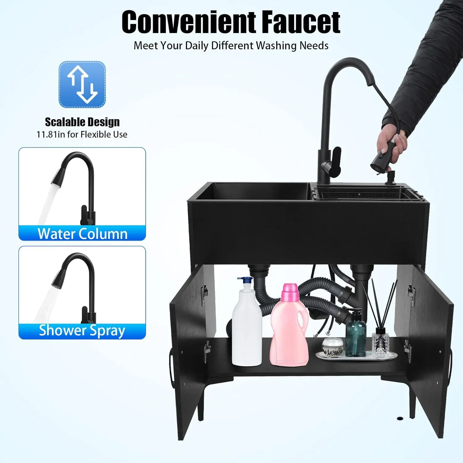 Are you looking for a kitchen sink solution that combines practicality and beauty? Then look at our product! The pulled-out faucet makes cleaning the sink a breeze, bringing you a convenient experience. It creates an efficient and clean kitchen environment for you. Choosing it is to choose quality and convenience, making your kitchen life more relaxed and enjoyable!