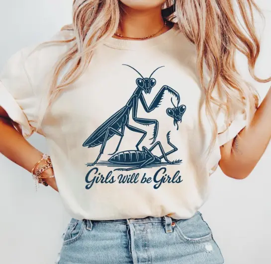 5. Comfort Colors® Girls Will Be Girls Shirt, Praying Mantis Tee, Insect Lover, Funny Insect Shirt