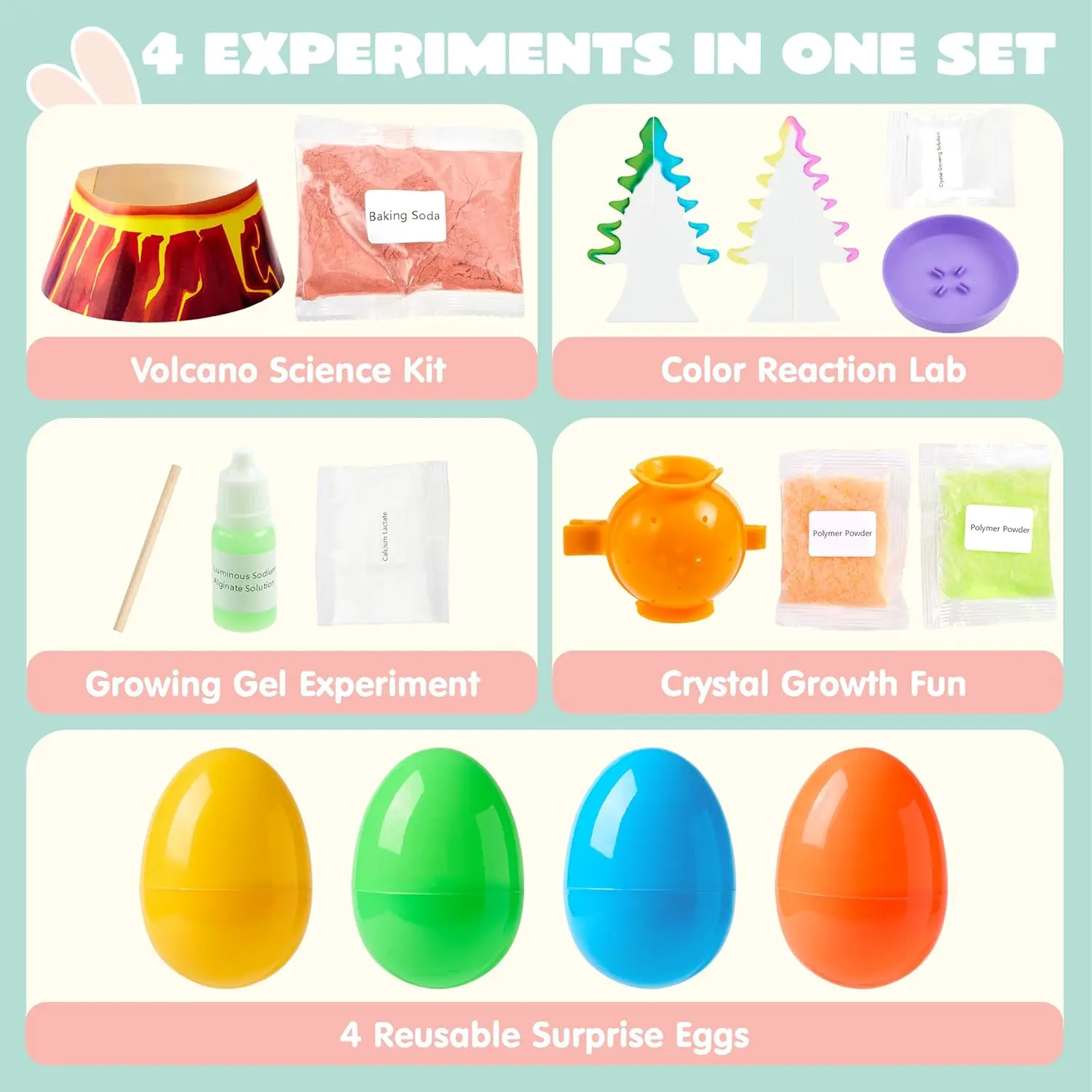 Jumbo Science Experiment Egg Kit (4 Pack) - 4 Prefilled Eggs with Hands-On STEM Activities. Easter Basket Stuffers That Make Learning Fun, Perfect for Egg Hunts & Party Favors