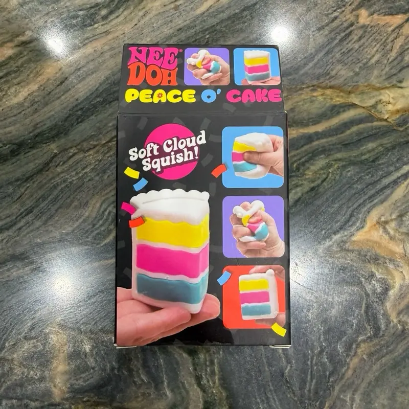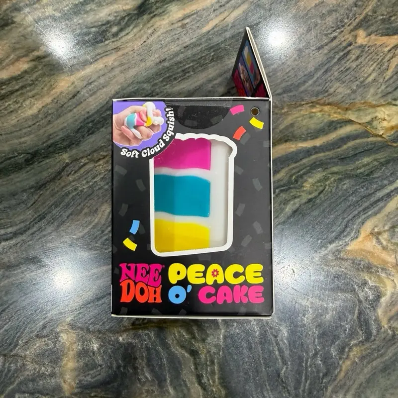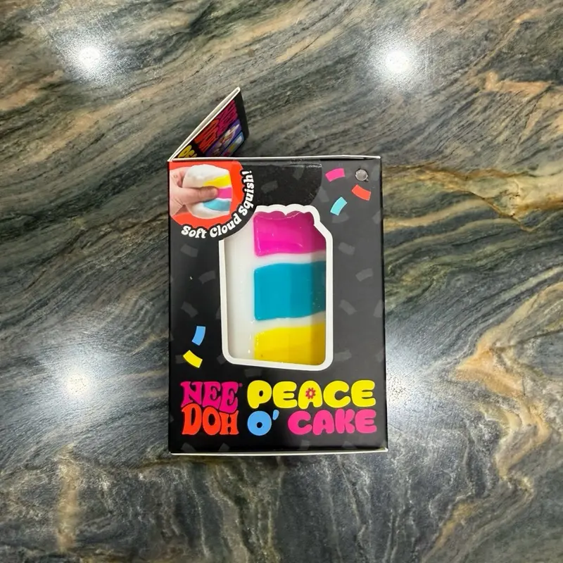 ✨ Introducing the NeeDoh PEACE O' CAKE Squishy Toy! This new, sealed stress ball is a delightful addition to your collection. Perfect for relieving stress, it features a vibrant rainbow cake design. Ideal for fans of unique, playful toys.