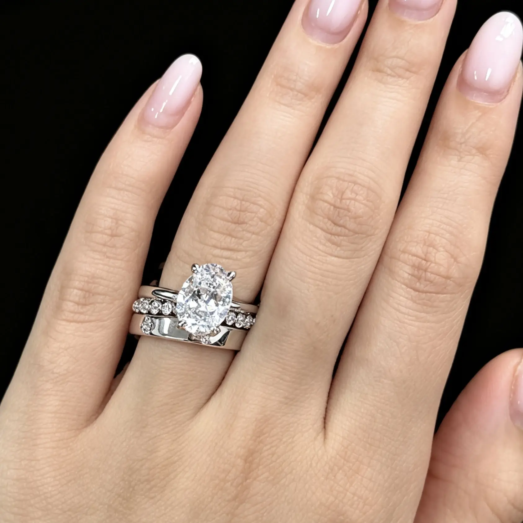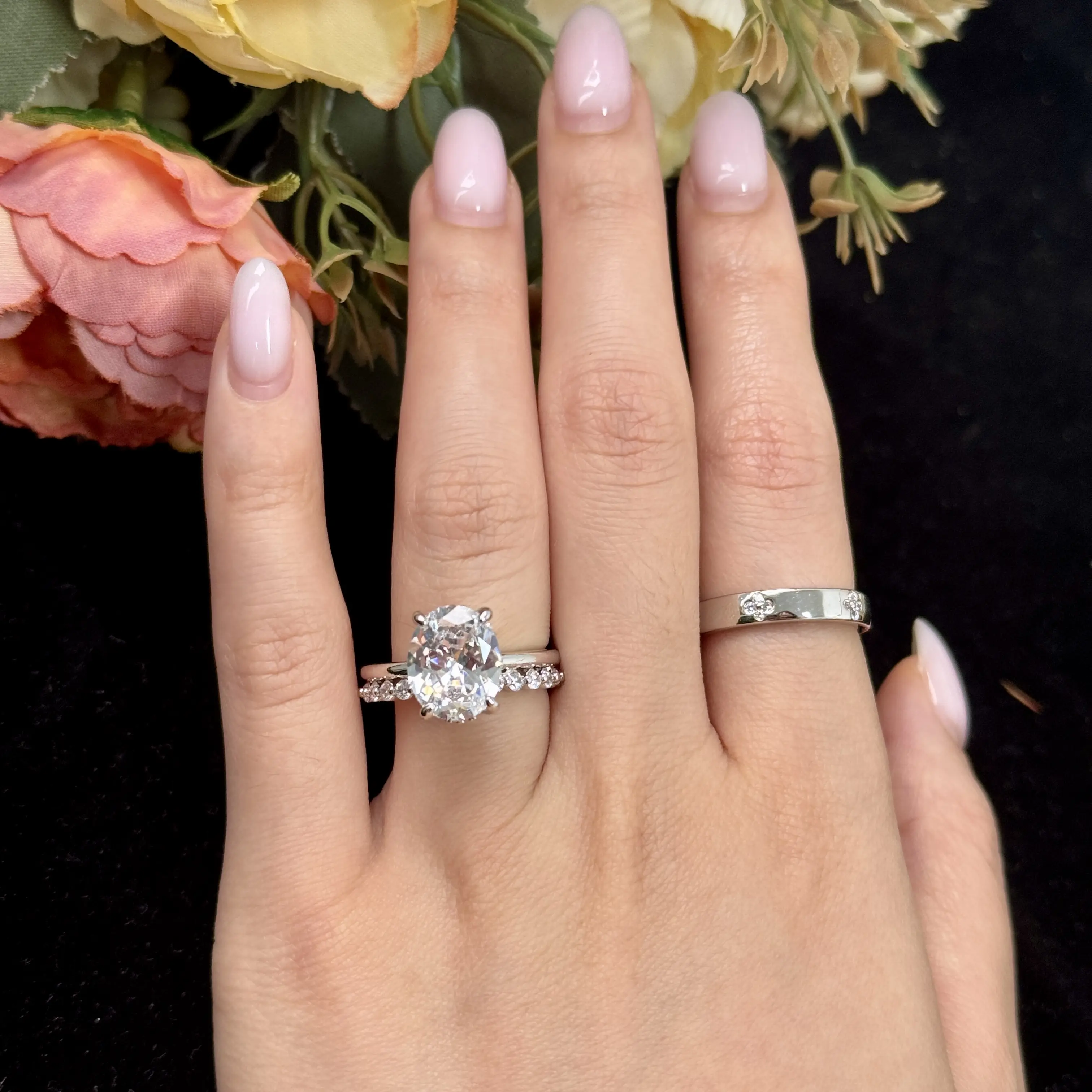Fall in love with the sparkle. This oval cut ring set is made to give that elegant, expensive look without being too over the top. Featuring a stunning center stone and matching bands with sparkling stones, it’s the perfect piece to make your hands look extra pretty.