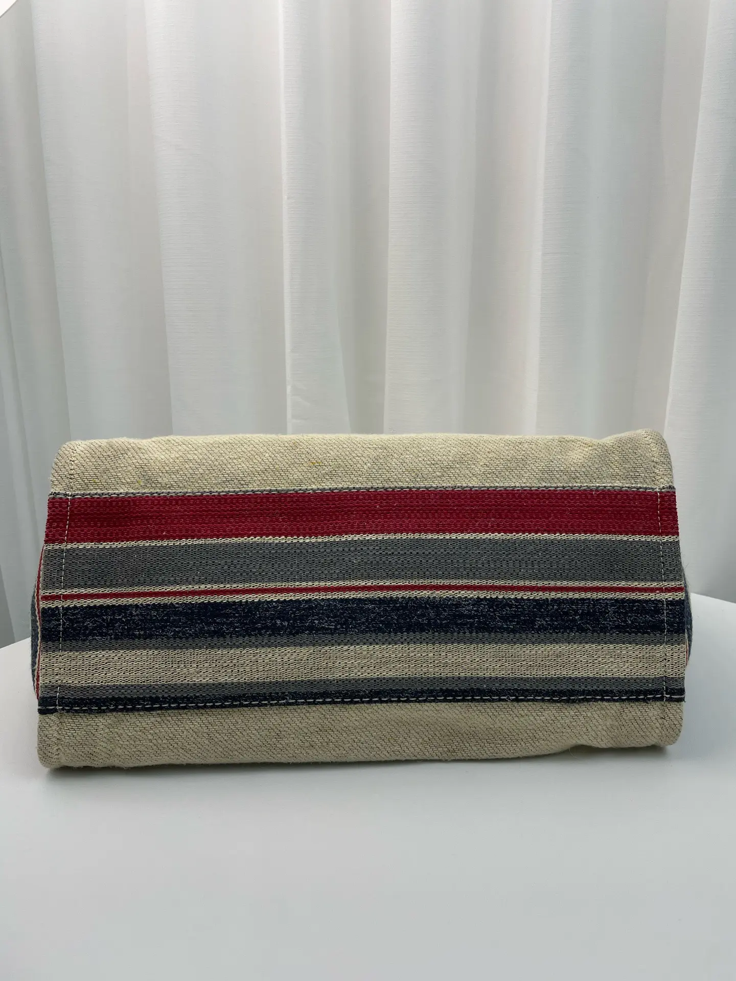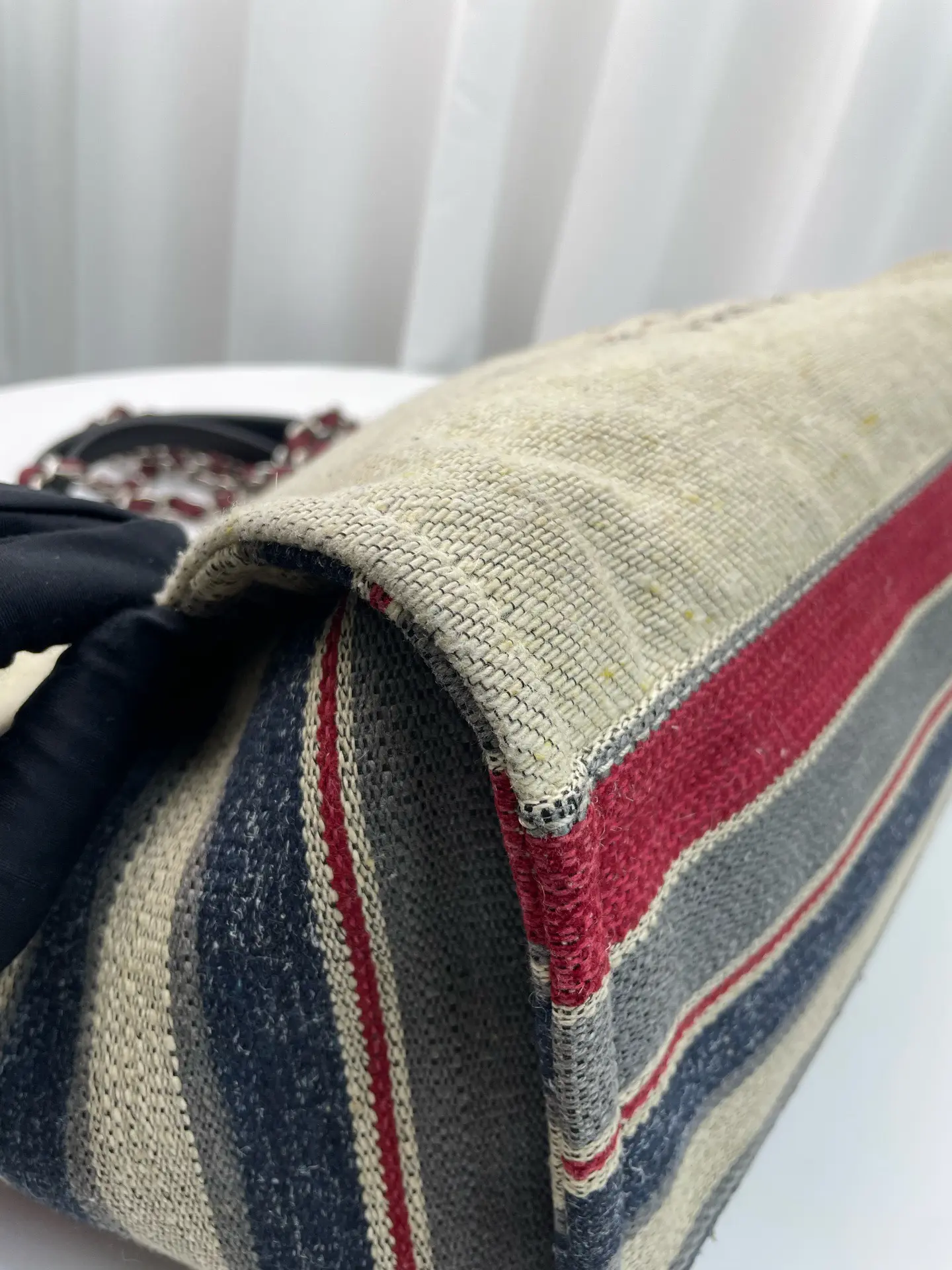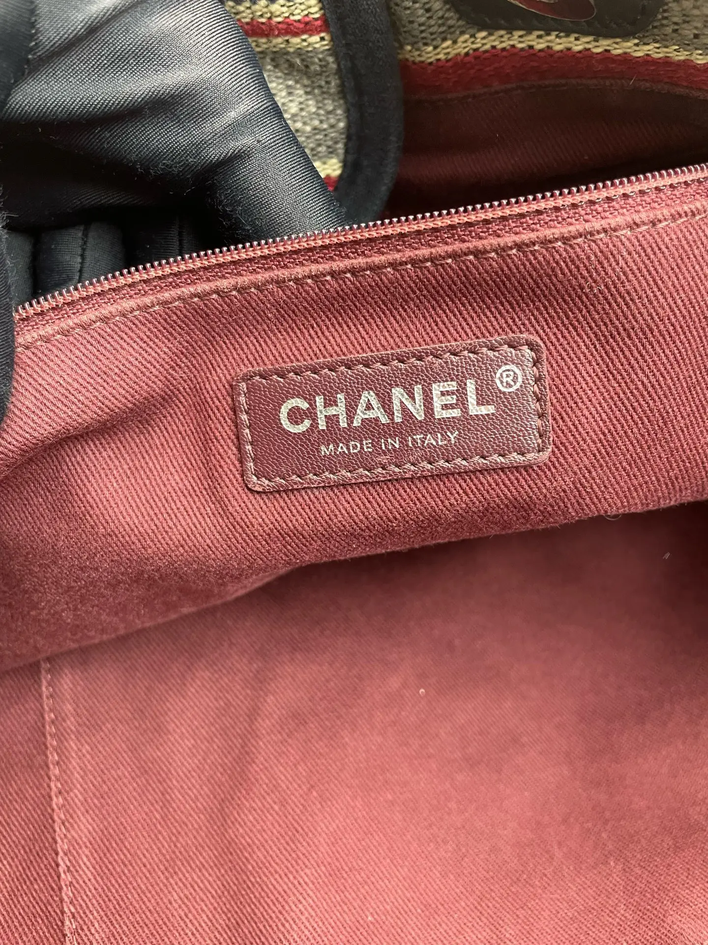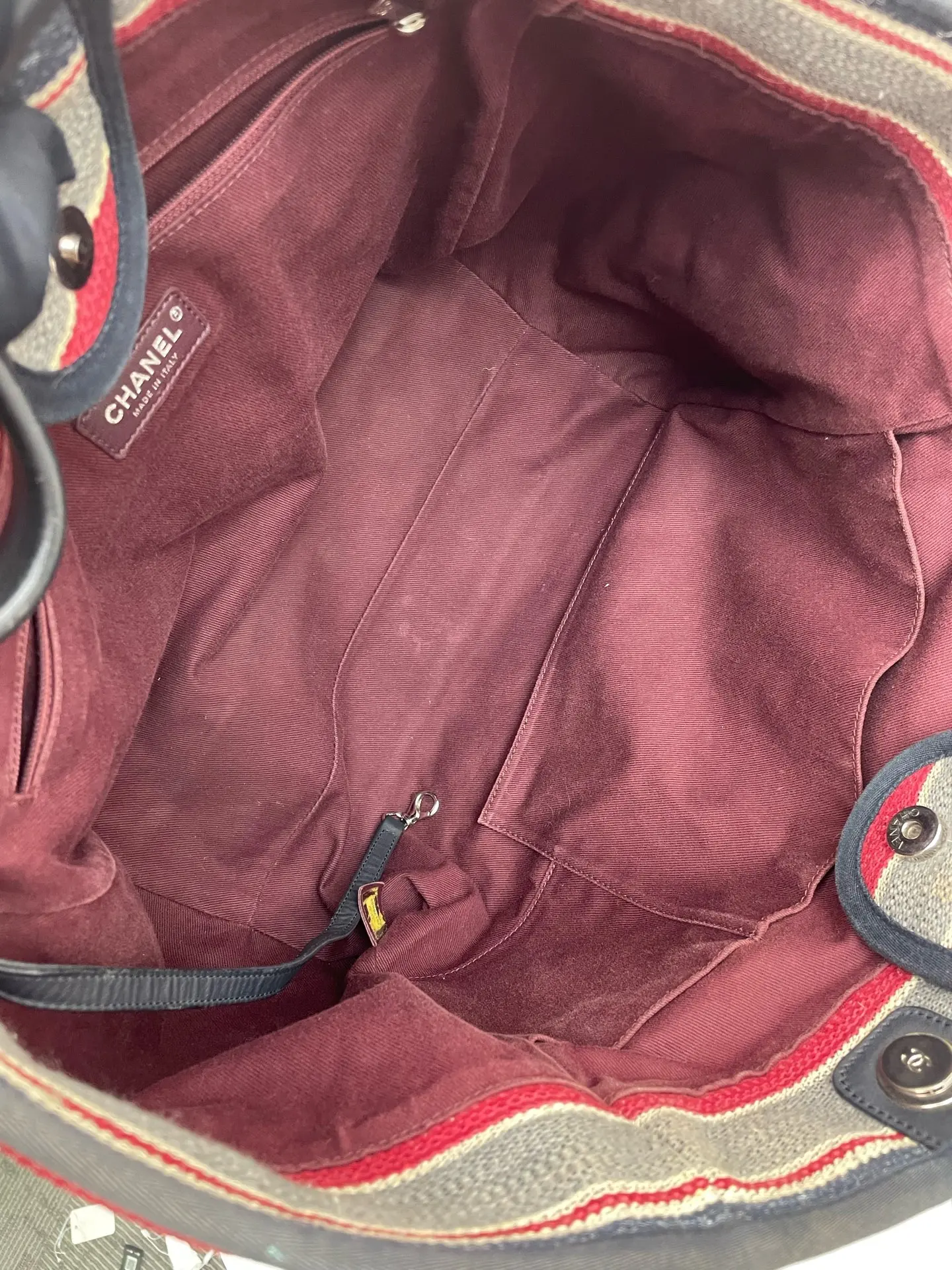 Pre-owned CHANEL canvas Tote Bags Beige Striped Leather Trim Silver Hardware Tote Bag