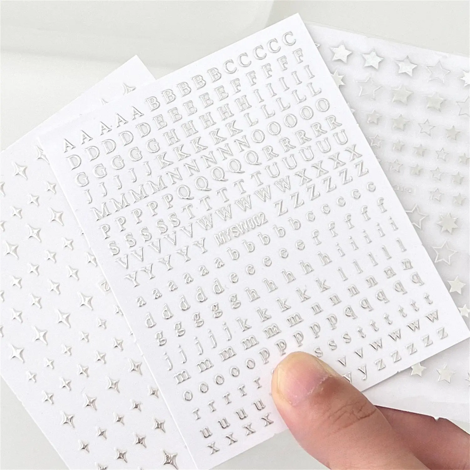 1/3pcs Silver Letters Star Stickers Y2K Kpop Toploader Deco Journaling Stickers Aesthetic Korean Stationery Art Decals for Phone