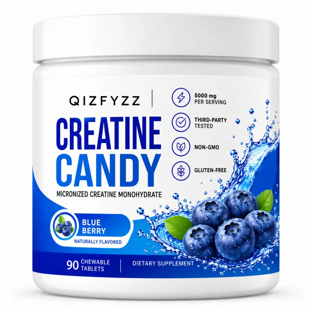 Creatine Candy Chewable Tablets 5000mg Per Serving, Micronized Creatine Monohydrate, Blueberry Flavor, 90 Count, Non-GMO, Gluten-Free, Workout & Muscle Support Supplement