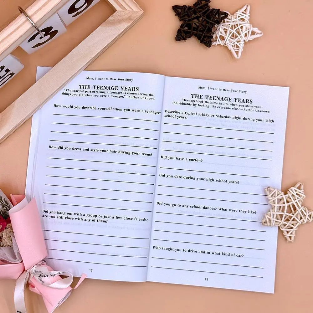 This journal is a heartfelt way to share your mom's life and love. Perfect for capturing her stories, it's a guided tool for meaningful conversations. Dive into memories and emotions with this special journal. It's not just a book; it's a bridge between generations.