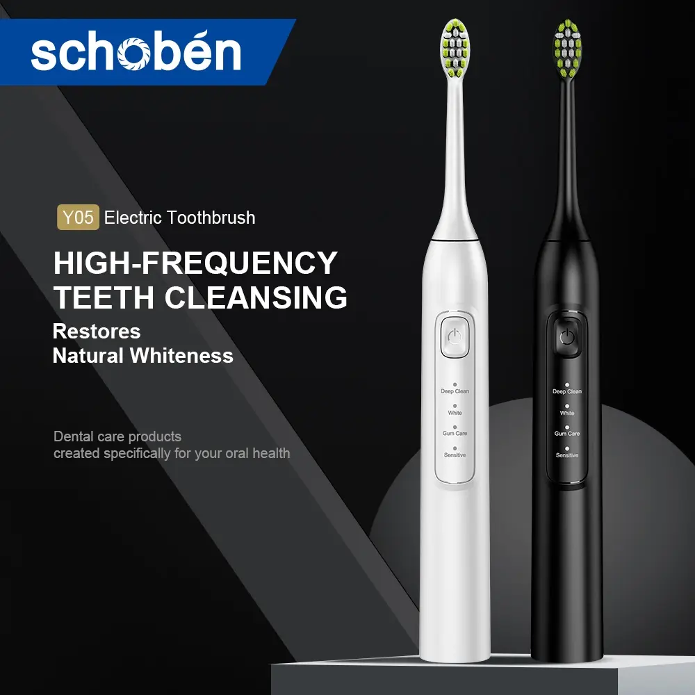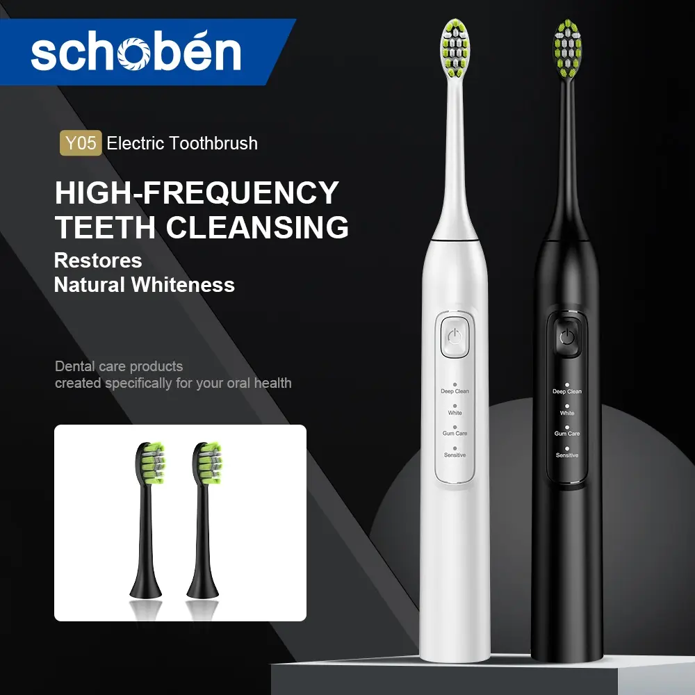 Electric toothbrushes for adults and children: rechargeable, comes with 2 brush heads, deep cleaning, smart timer, 4 adjustable modes, lightweight, waterproof