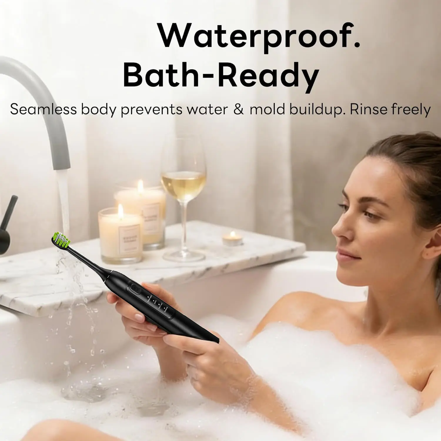 This electric toothbrush features an ergonomic, non-slip handle that offers a comfortable grip and a stylish design. It is equipped with a 2-minute smart timer and 30-second zone-switching reminders to guide you in brushing each area evenly, helping you easily develop a scientifically sound brushing routine. It is an excellent choice whether for personal use or as a gift for family members.