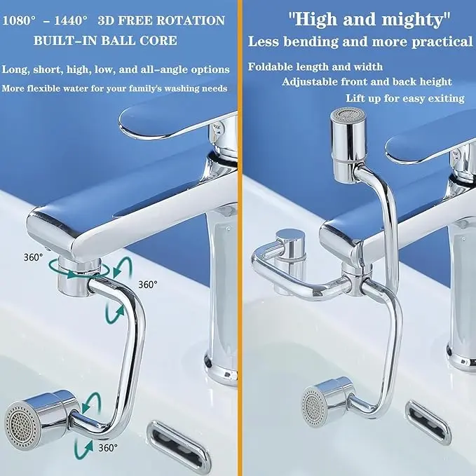 This U-shaped faucet extender offers 360° rotation, perfect for bathroom and kitchen sinks. It features 2 adjustable modes, ensuring versatility in use. The sleek silver design complements any decor. Ideal for those seeking convenience and functionality.