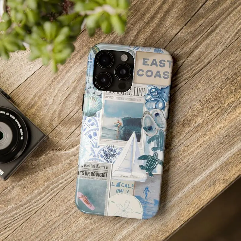 Beachy Blue Coquette Phone Cases & Covers, Summer Beach Coastal Cute iPhone Case, Preppy Aesthetic and Trendy Girly Phone Accessories