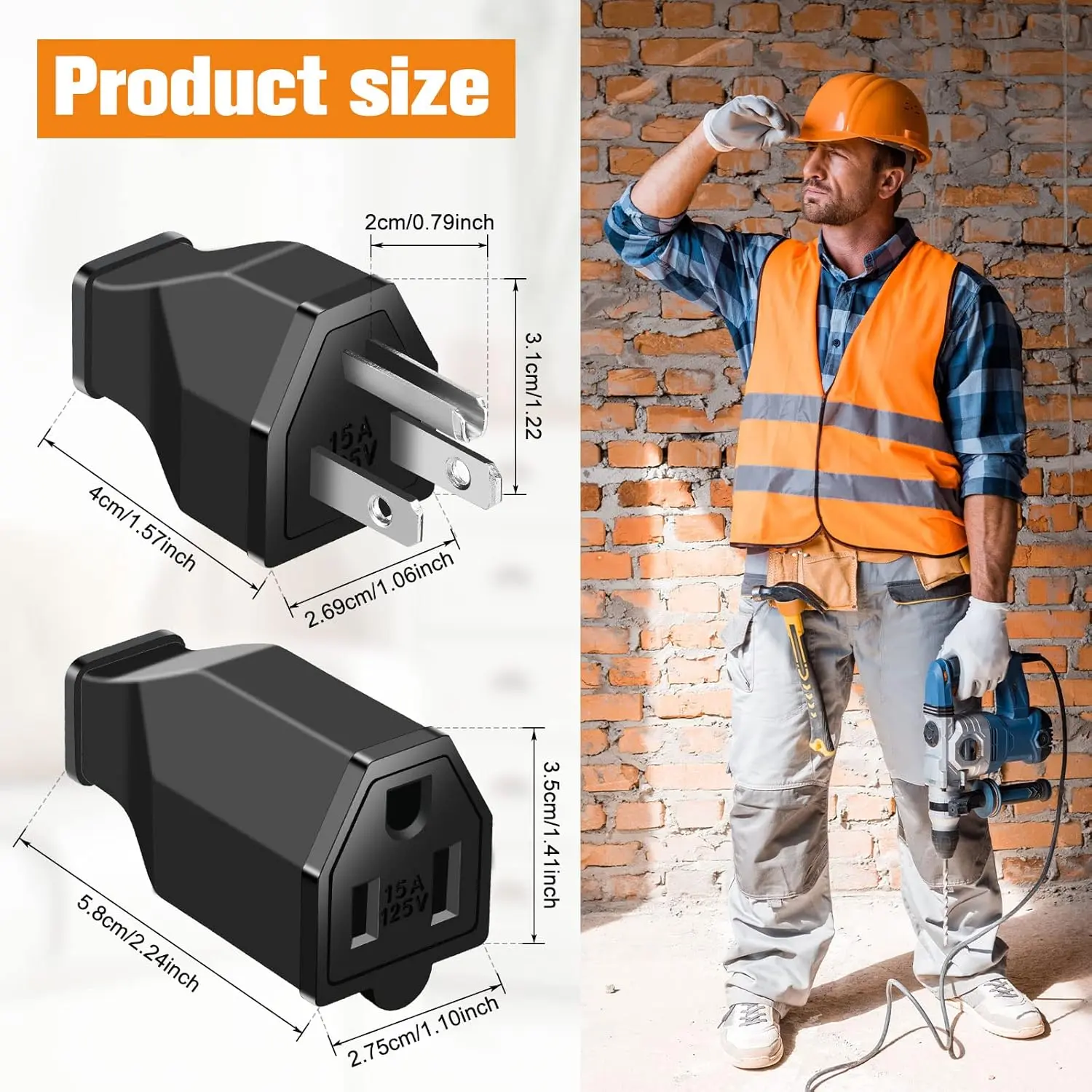 20 Pcs Extension Cord Plug Replacement, Male and Female Extension Cord Ends, 125V 15A 2 Pole 3 Wire Straight Connector, Nema 5-15P 5-15R Compatible Replacement Plug, 1875W Heavy Duty Electrical Fitting