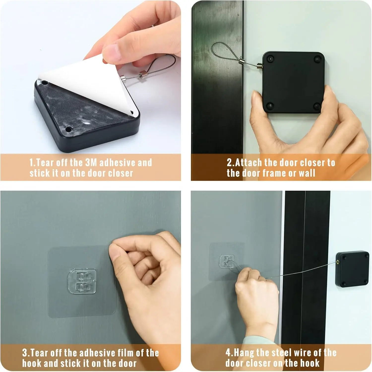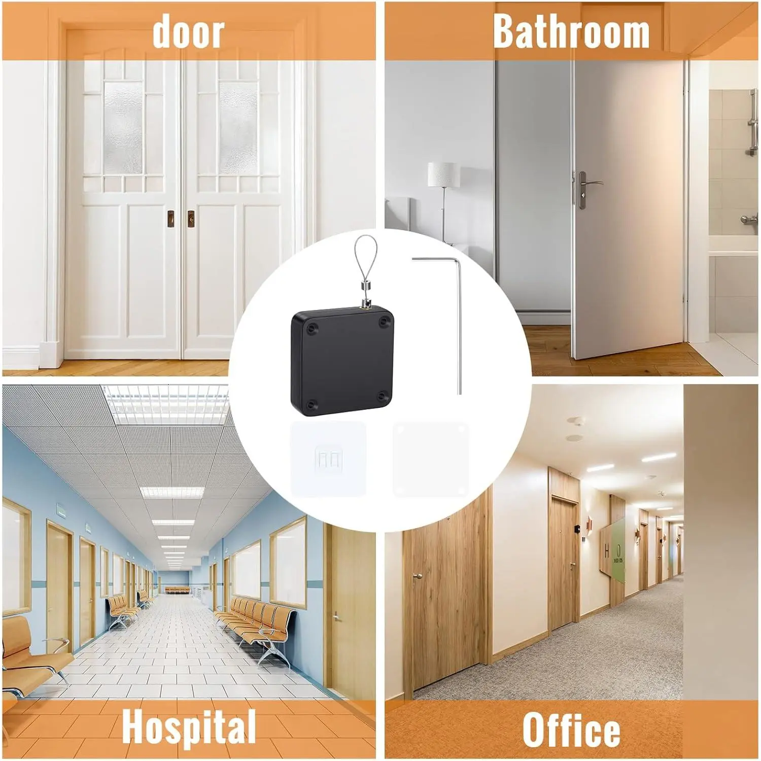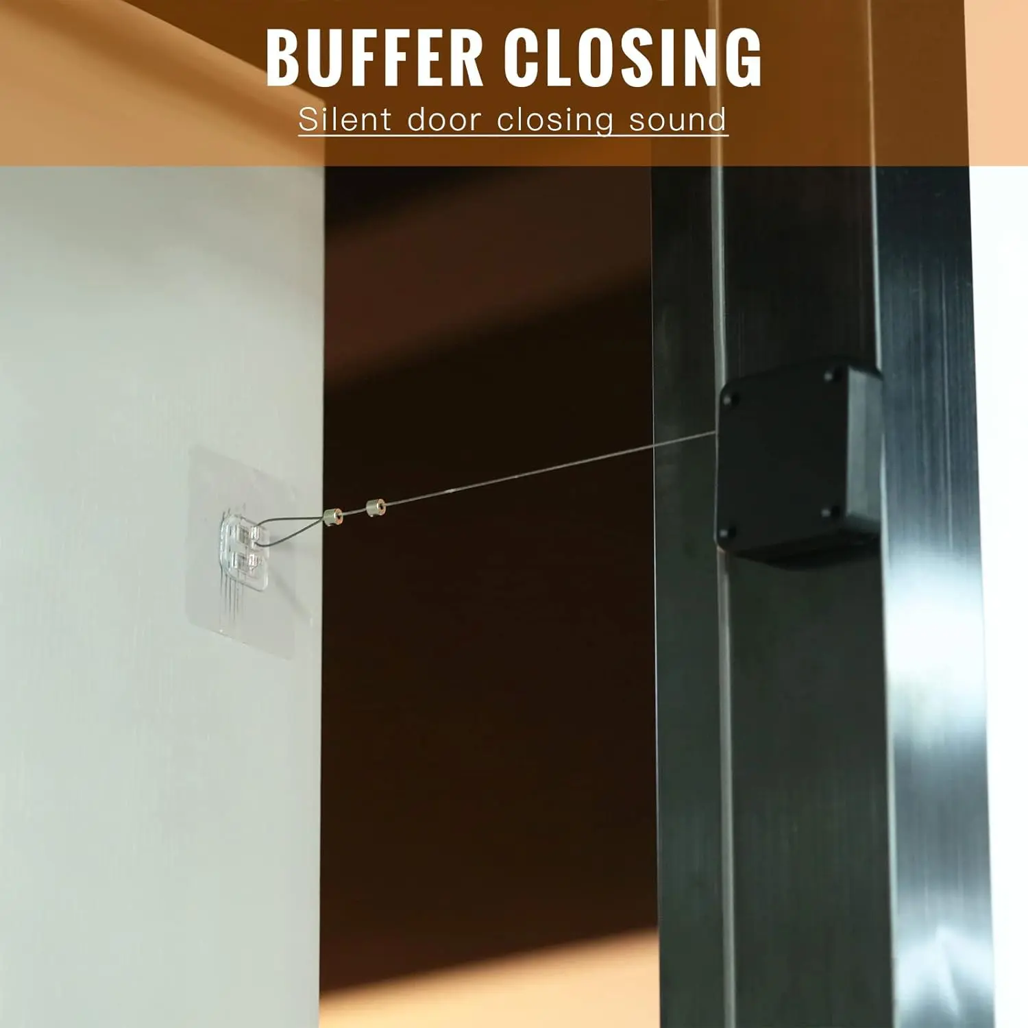 8 Pcs Punch-Free Automatic Door Closer, 800g Tension Self Closing Door Device with 47 Inch Steel Drawstring, Multi-Purpose Auto Door Closing Tool for Bathroom Bedroom Study Office, Black