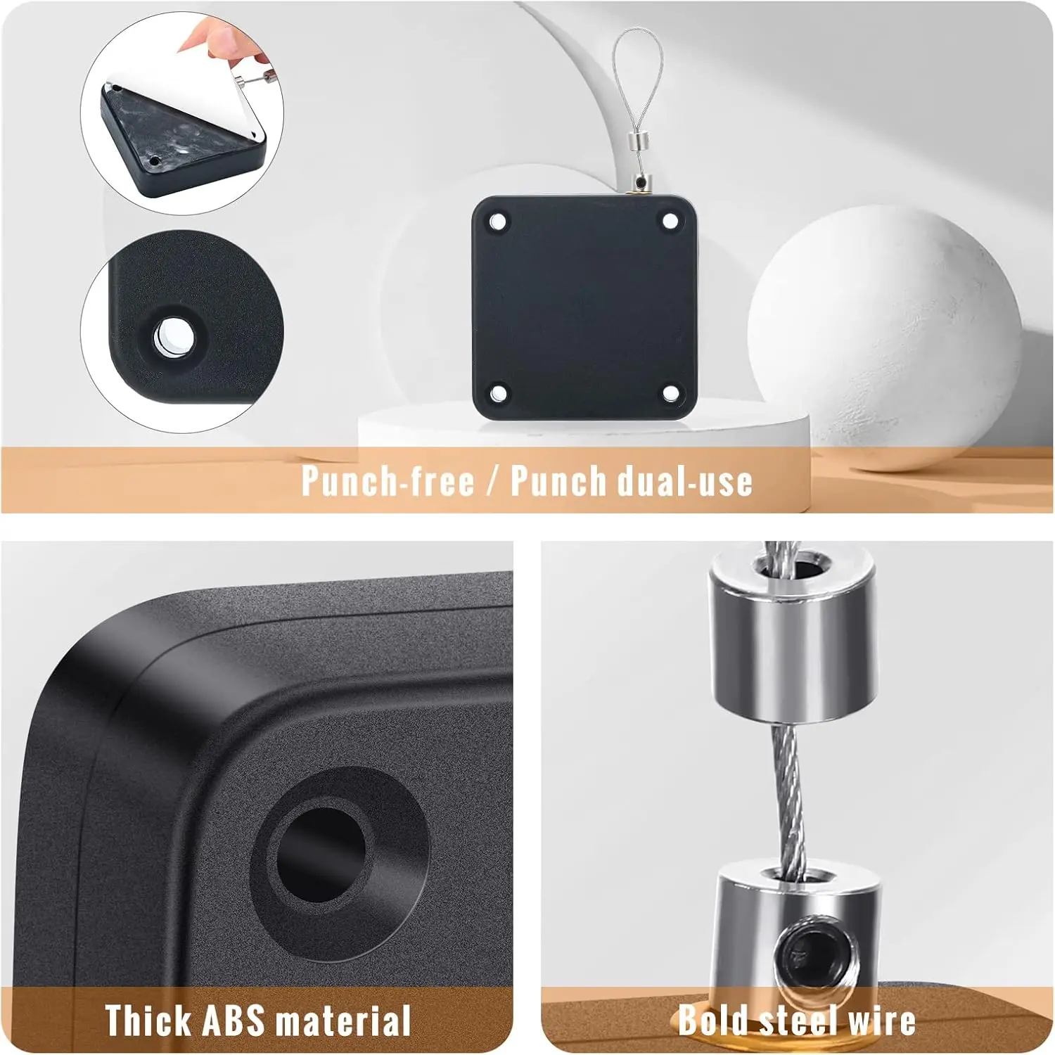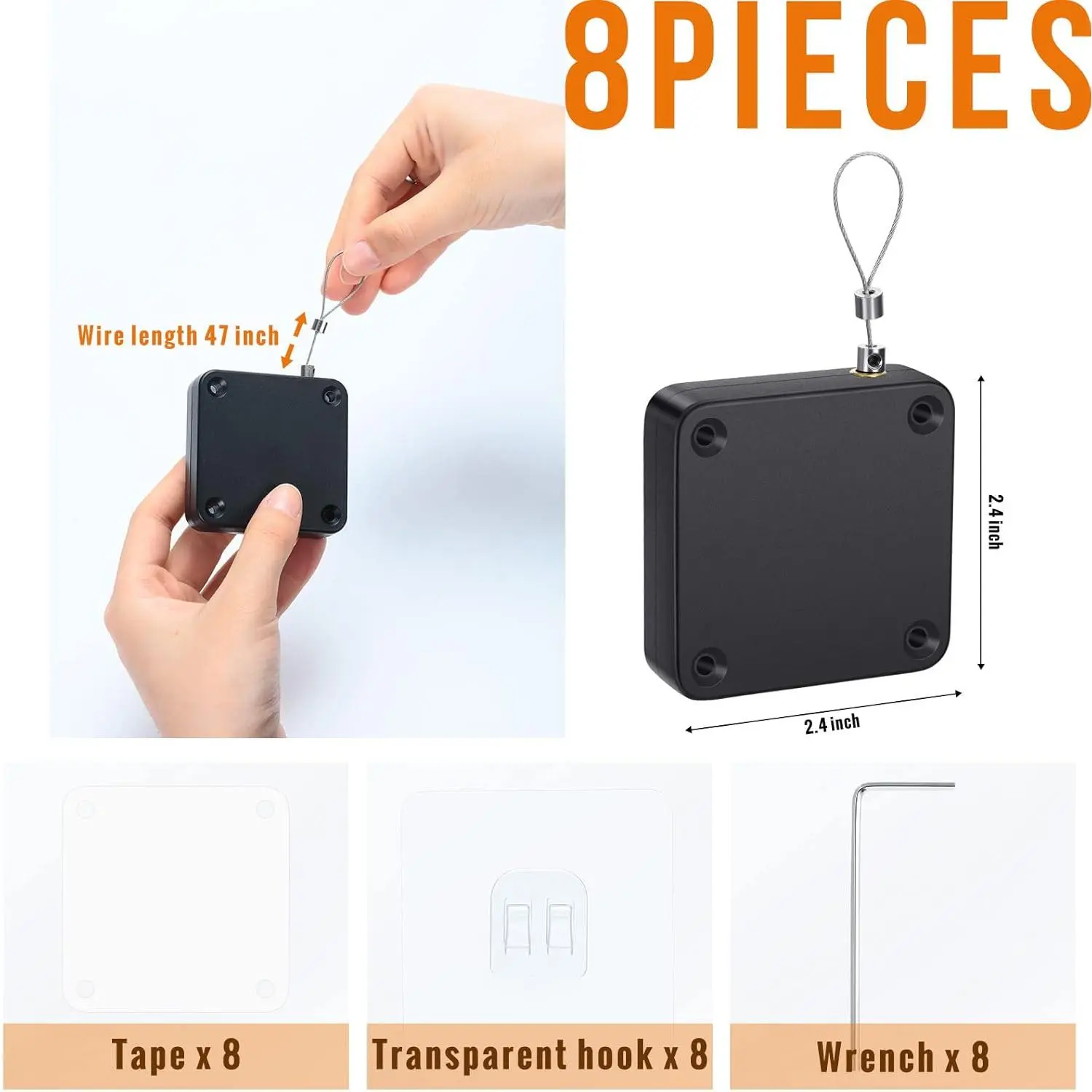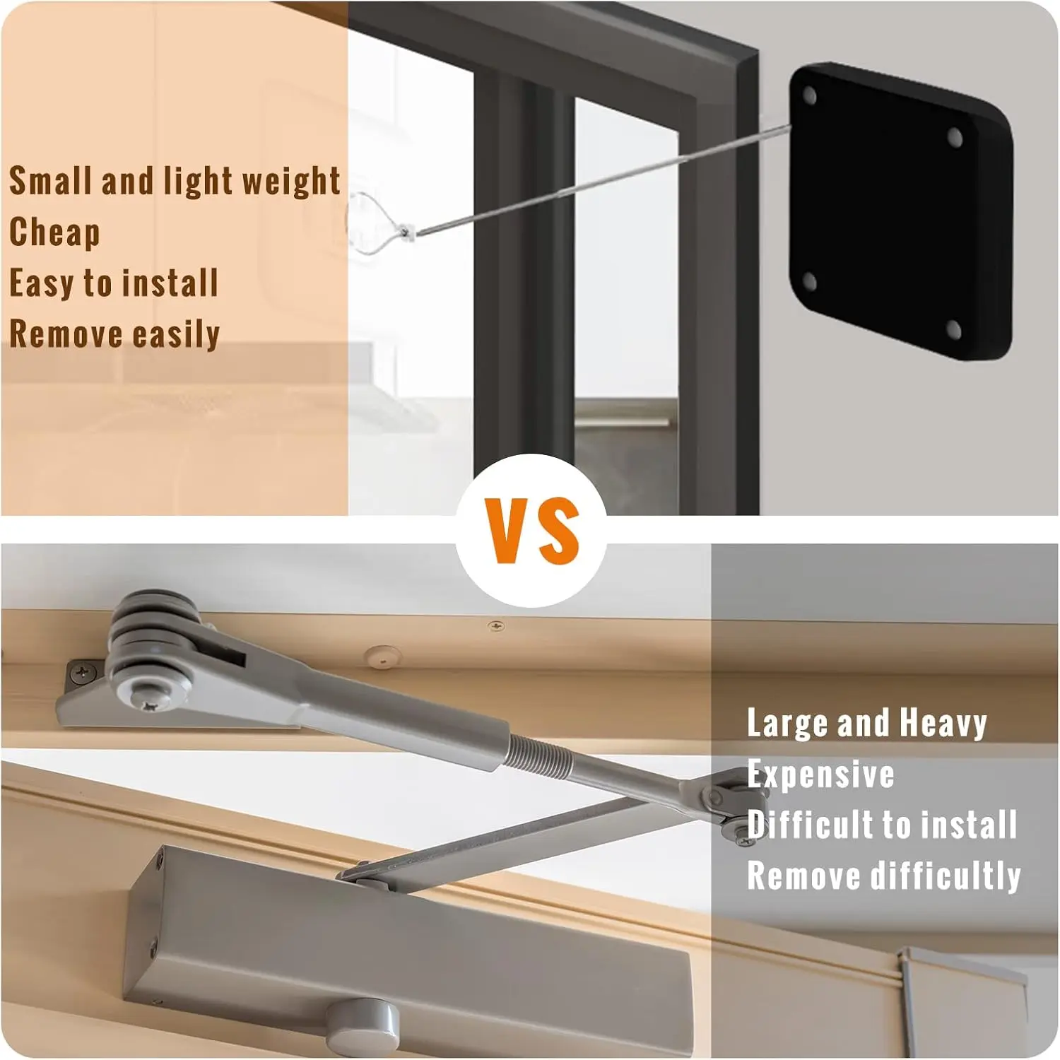 8 Pcs Punch-Free Automatic Door Closer, 800g Tension Self Closing Door Device with 47 Inch Steel Drawstring, Multi-Purpose Auto Door Closing Tool for Bathroom Bedroom Study Office, Black