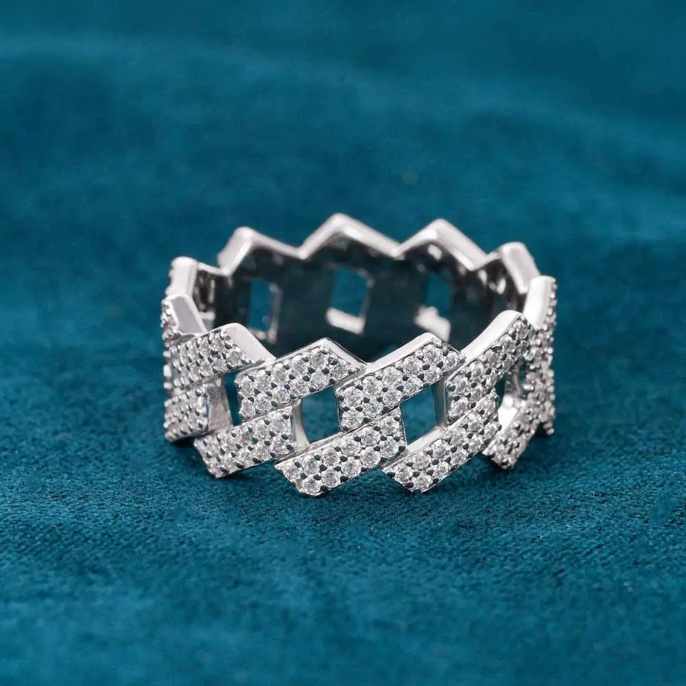 Certified Full Moissanite Diamond Cuban Rings for Men Women 100% 925 Sterling Silver Hip Hop Double Row Eternity Band Ring