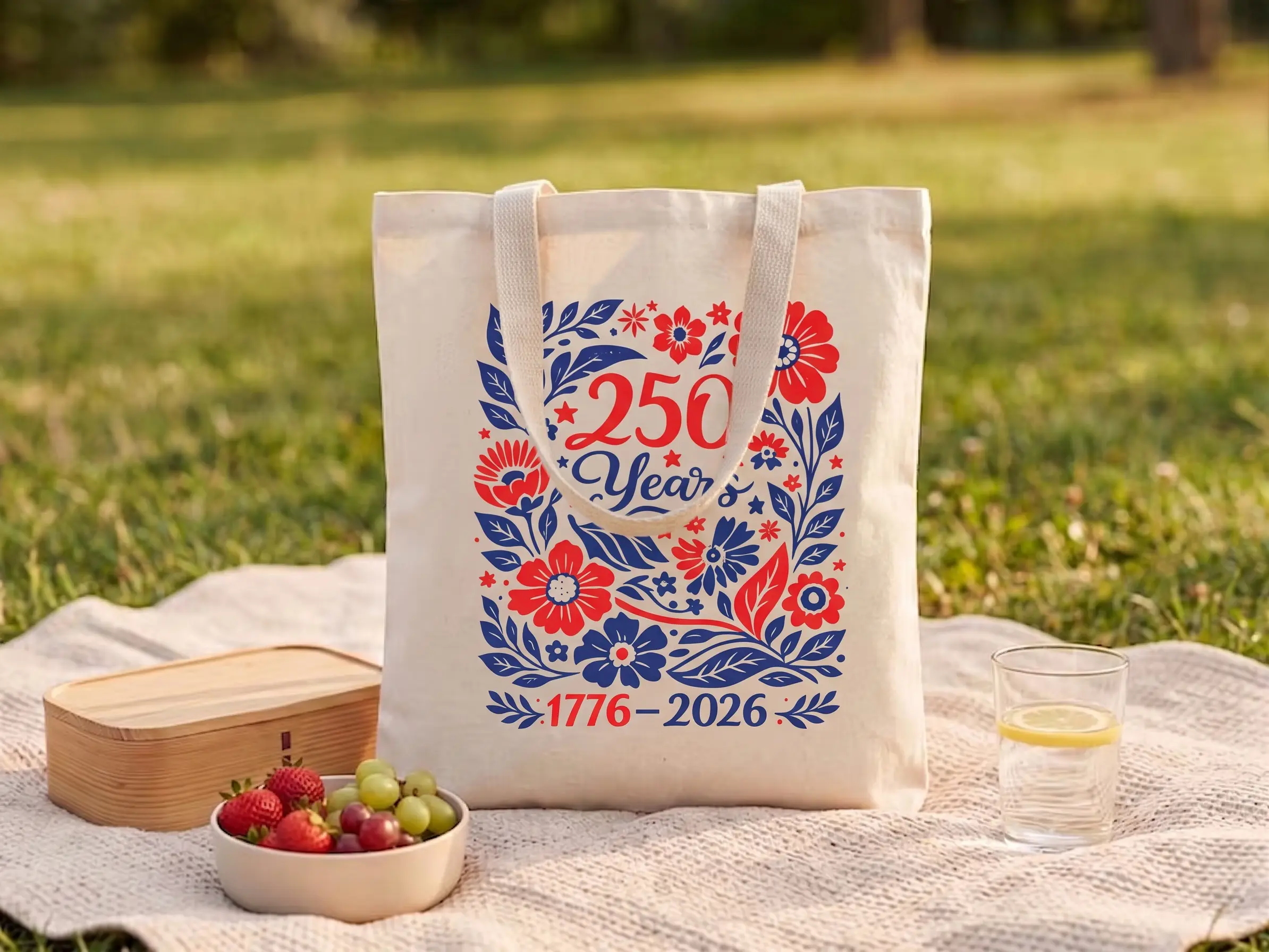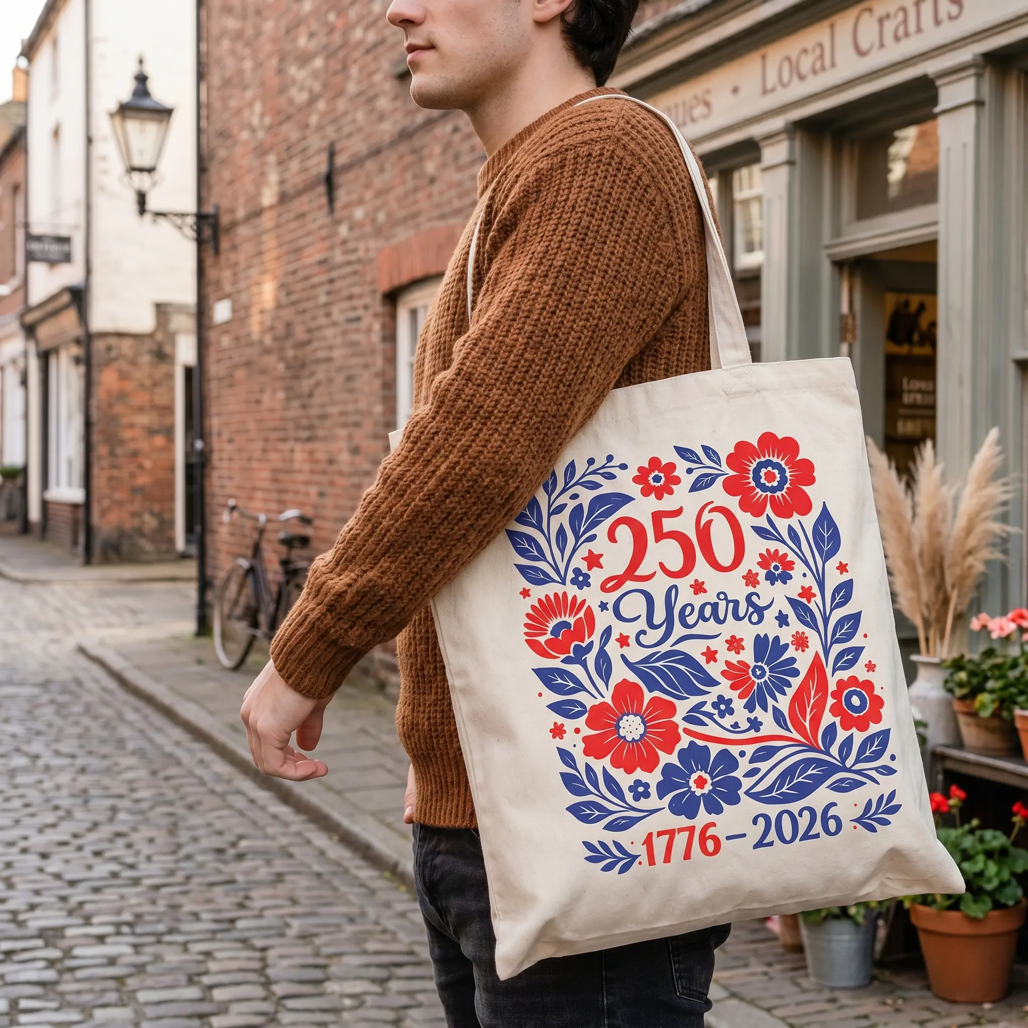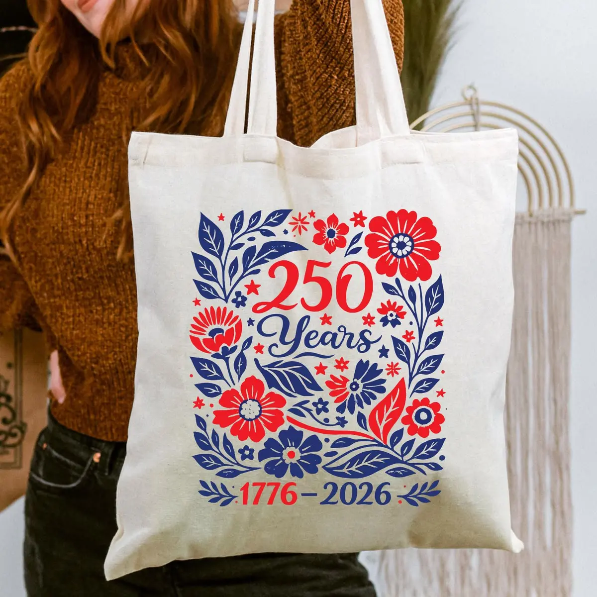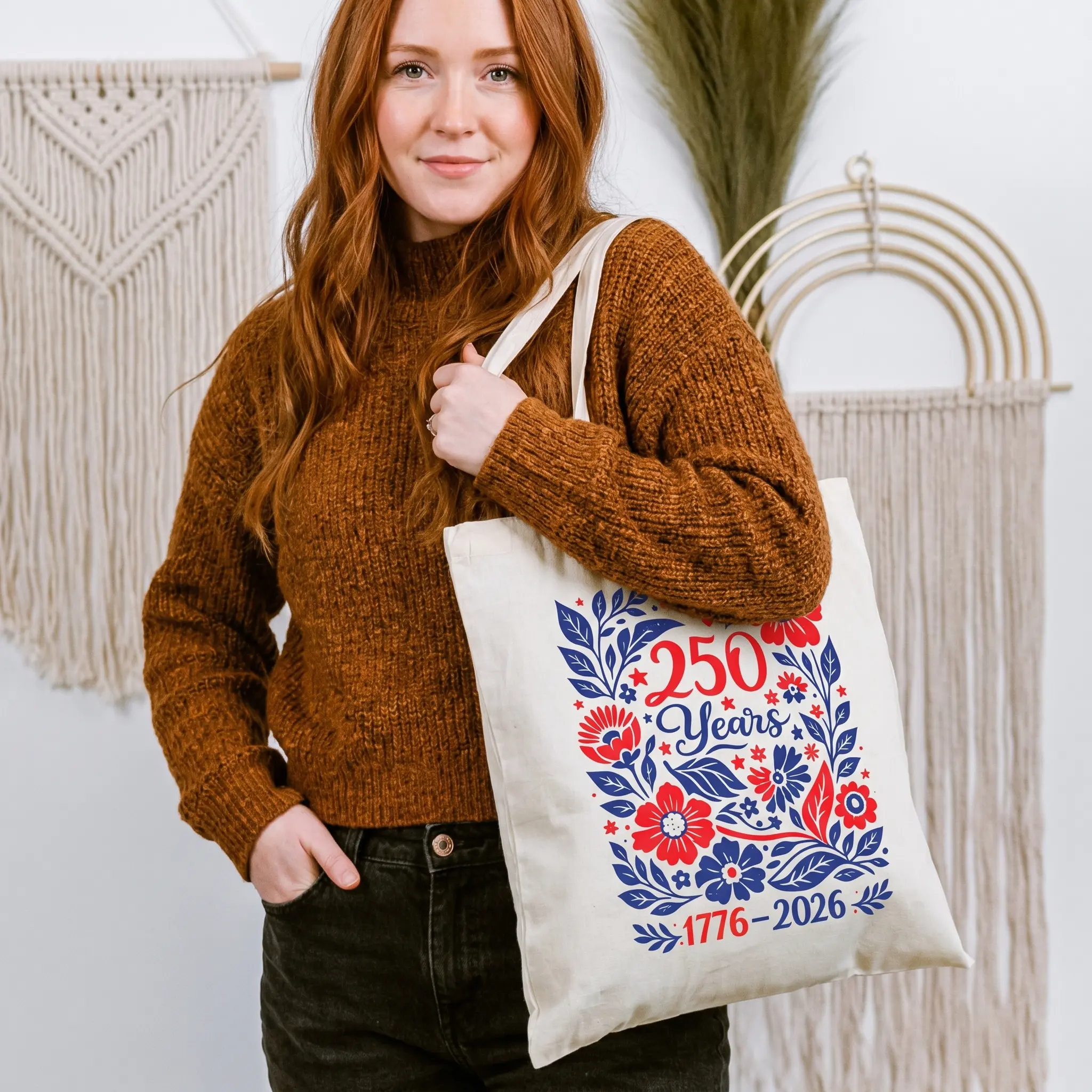 250 Years Floral Tote Bag – Patriotic 1776–2026 Canvas Bag