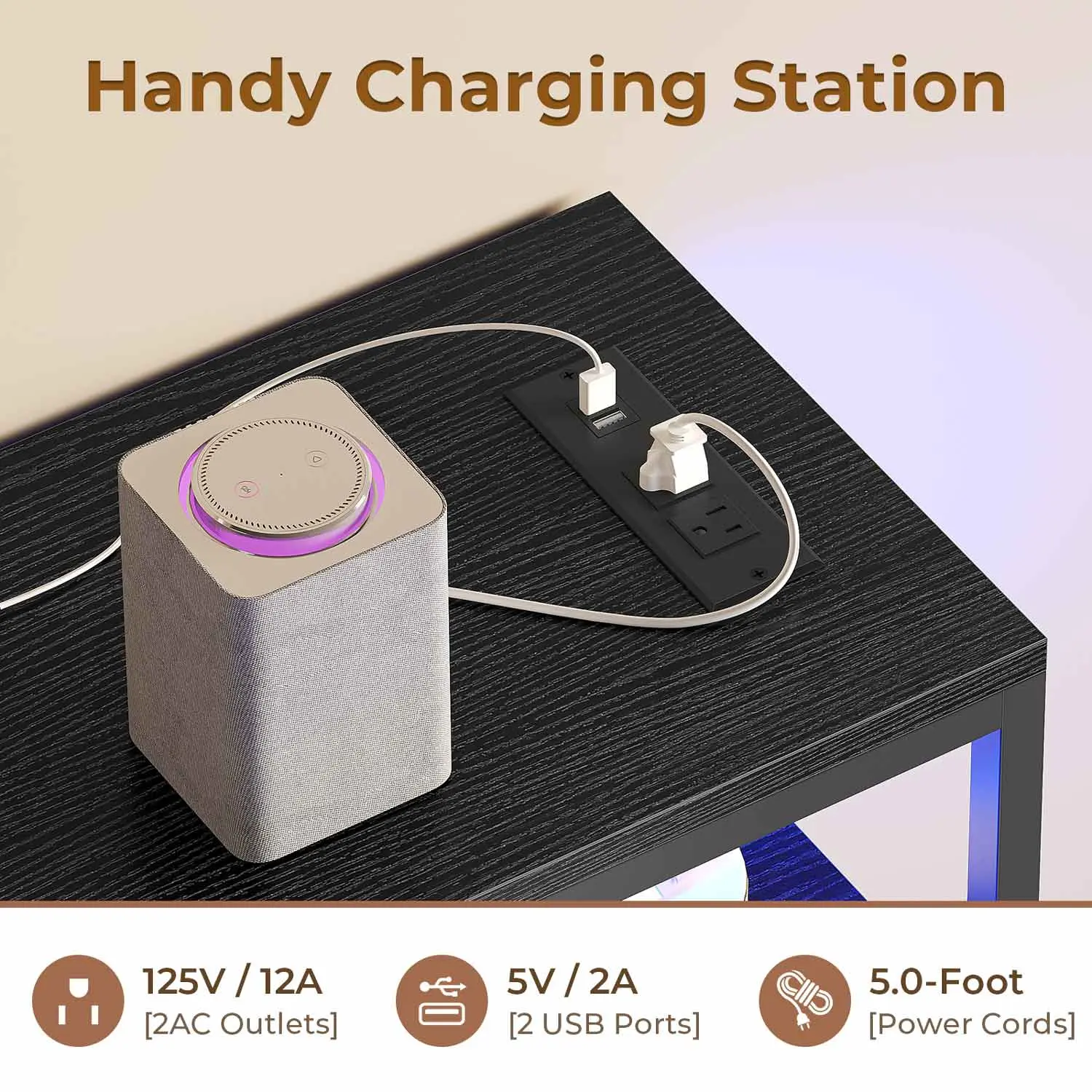 The TV entertainment center comes with 2 AC outlets and 2 USB ports, provide power for up to 4 devices simultaneously.turning it into a charging hub for your TV,phone and gaming gear.