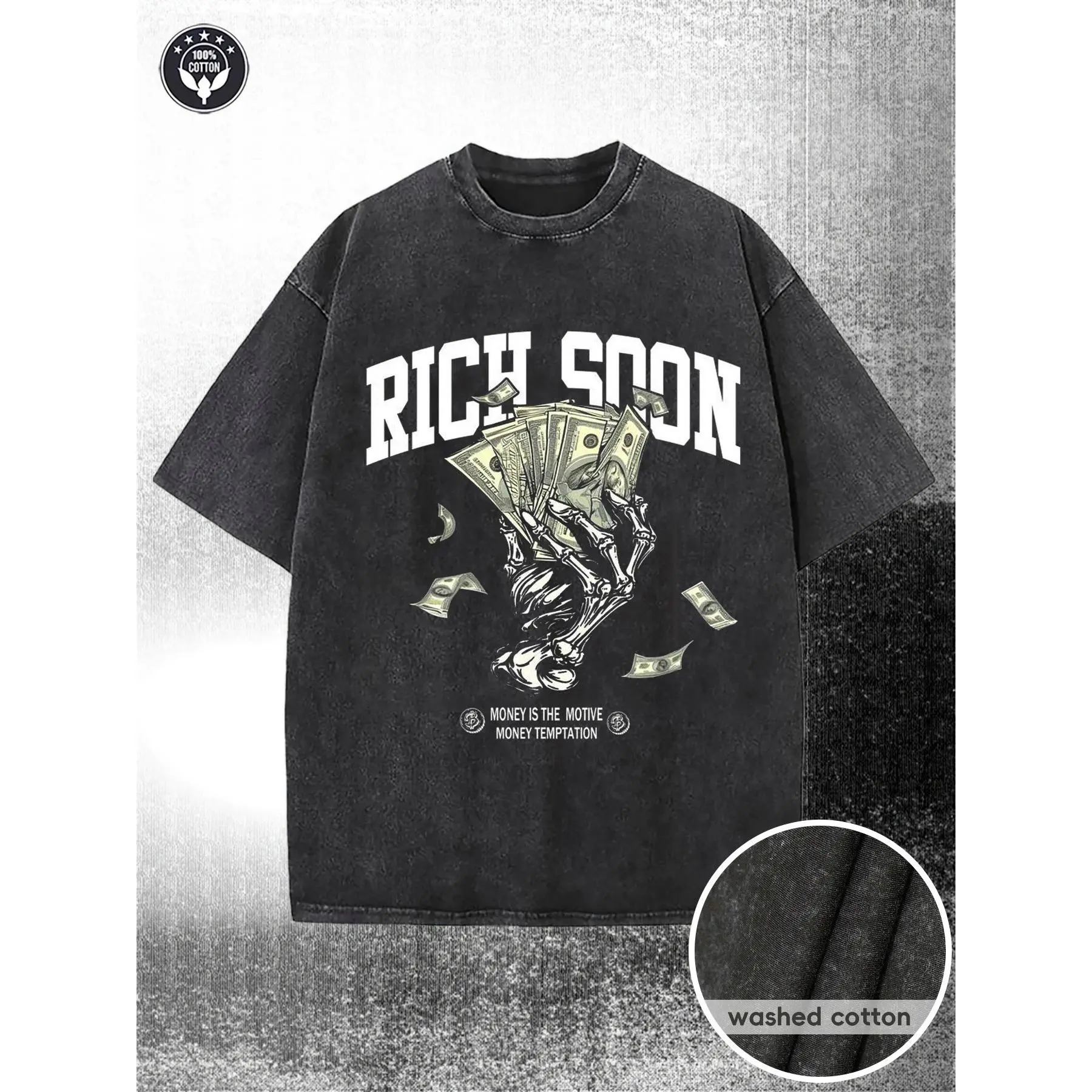 230G Water-Washed T-Shirt, Wealth Print, High-Quality Wax-Dyed, Machine Washable, with a Certain Thickness Suitable for Summer T-Shirts, Outdoor, And Holiday Gifts
