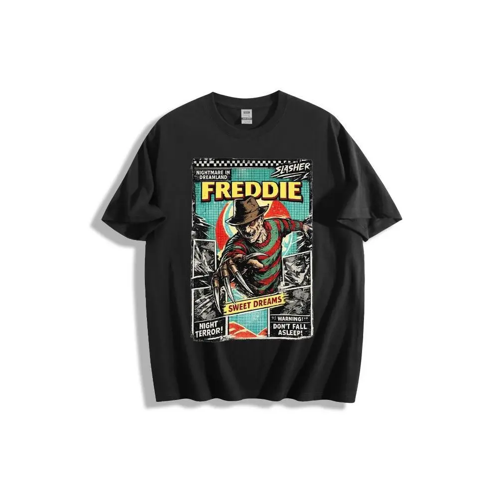 Vintage 'A Nightmare on Elm Street' Freddy Krueger "NIGHTMARE IN DREAMLAND" Horror Movie Poster - Retro Comic-Style Distressed Wall Art, Teal/Red/Yellow Color Scheme, Clawed Glove Menacing