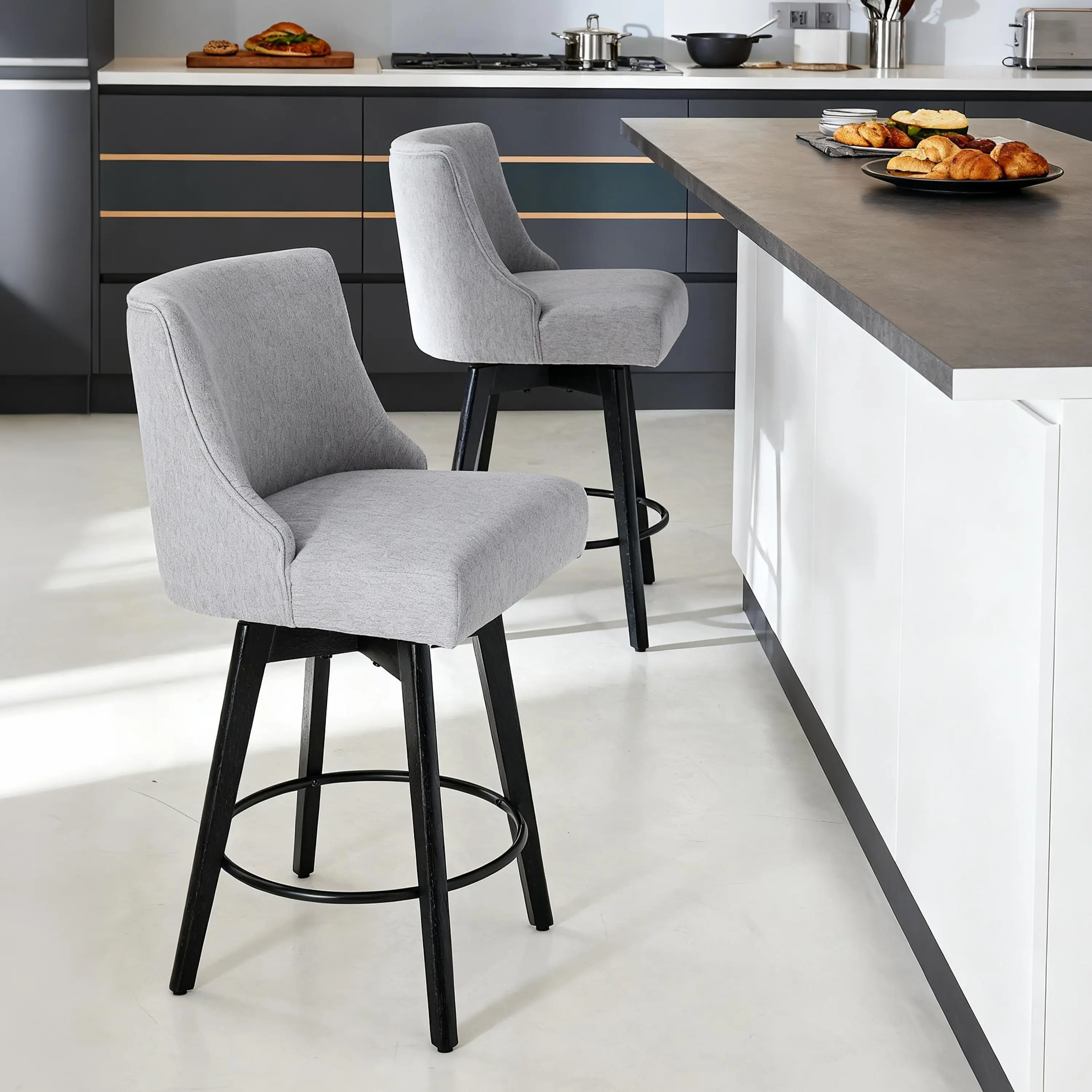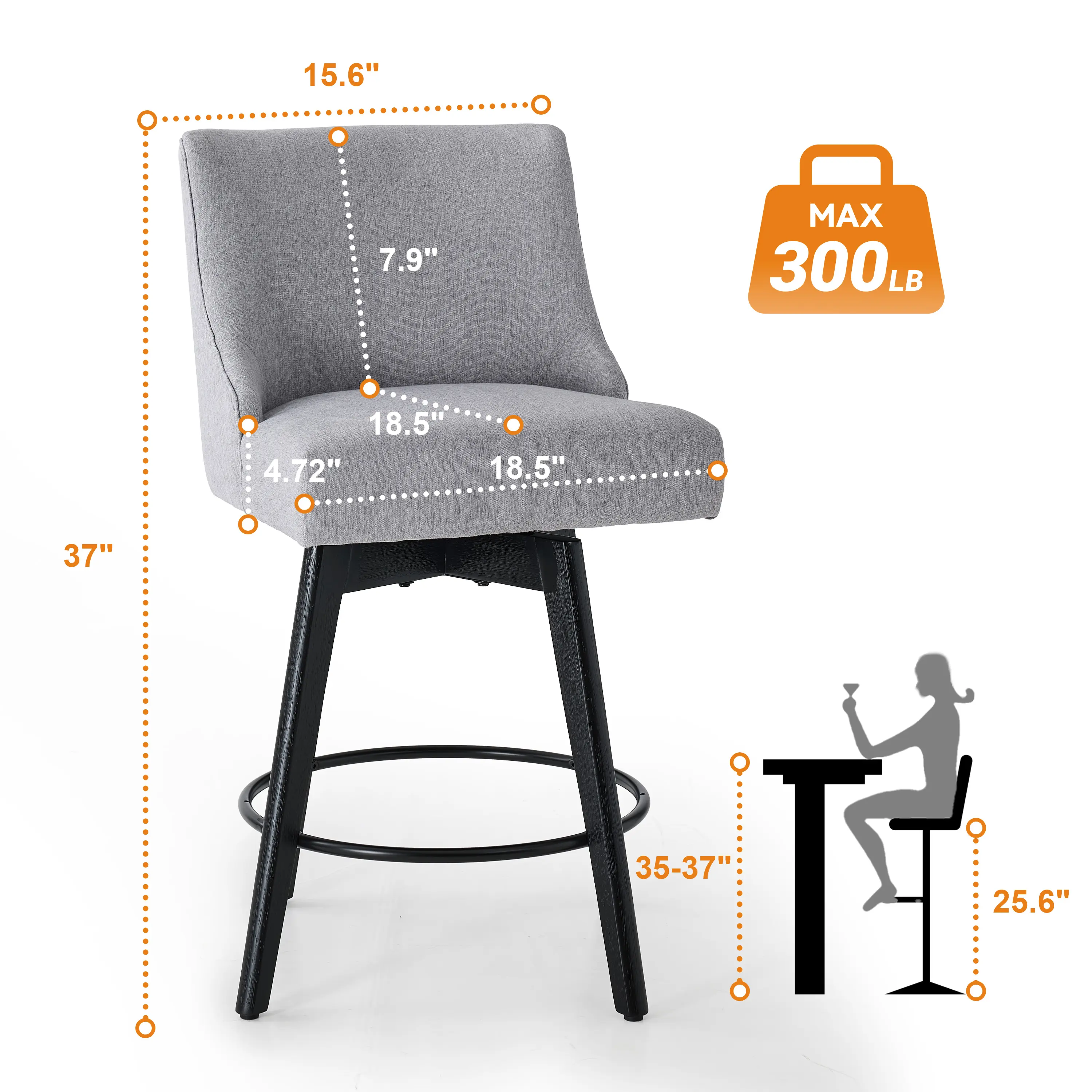 ·Sturdy Splayed Rubber Wood Legs Constructed with kiln-dried rubber wood legs for enhanced stability and long-lasting durability. Featuring a natural wood grain and elegant finish, these bar stools support up to 300 lbs while adding a warm, stylish touch to your space.