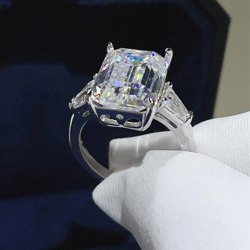 5CT 10CT Emerald Cut Full Moissanite Three Stone Ring