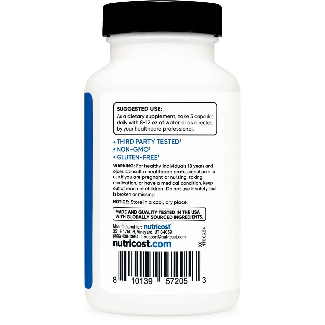 Nutricost dietary supplement capsules are formulated for adult men and women seeking daily nutritional support. Each gluten-free capsule delivers 750 mg strength with a serving size of 490 mg, designed to fit into a consistent wellness routine. Packaged with 90 capsules per bottle, this provides 30 servings for a full month of use. Easy to incorporate into daily health practices, these unisex supplements are crafted to meet modern dietary preferences while supporting overall wellness.