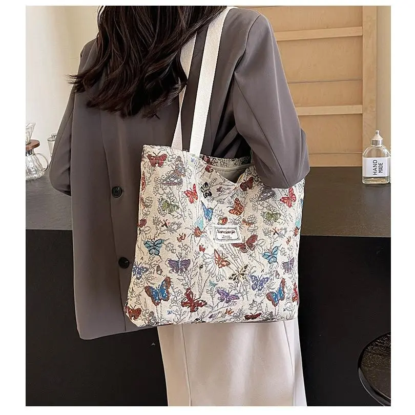 Summer single-shoulder canvas bag for women, large-capacity handbag for going out, versatile tote bag for students, class, and commuting